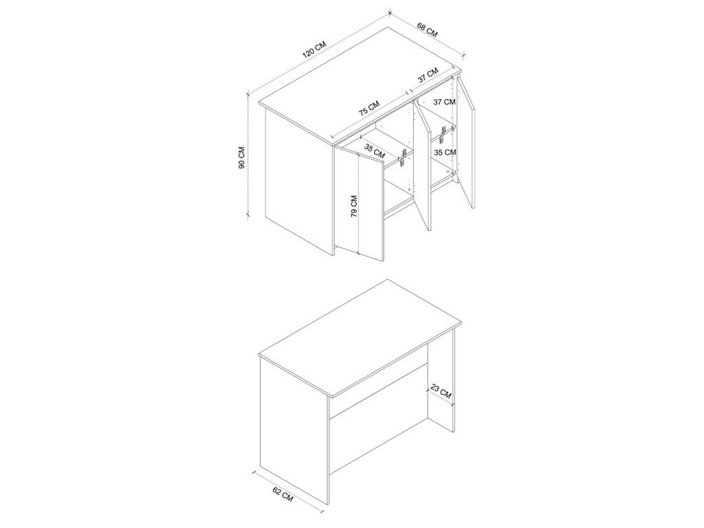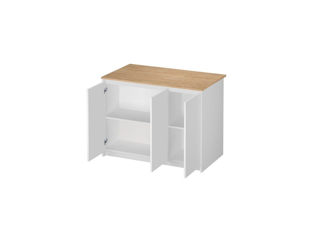 Ostrůvek nabízí prostornou pracovní desku, která je vhodná pro přípravu jídel, servírování nebo rychlé stolování. Praktické úložné prostory v podobě skříněk a polic poskytují dostatek místa pro kuchyňské potřeby, nádobí či malé spotřebiče, které tak budete mít vždy po ruce. Ostrůvek je vyroben z kvalitních 18 mm LTD desek v bílém matném provedení. Vrchní deska je v barvě dub safírový.