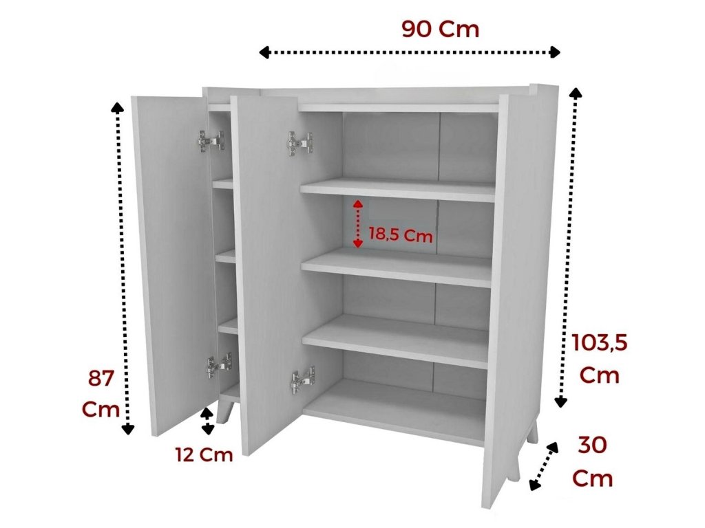 Tato moderní komoda je vyrobena z kvalitních LTD desek, které jsou nenáročné na údržbu. Jejich tloušťka je 18 mm. Barva: bílá.