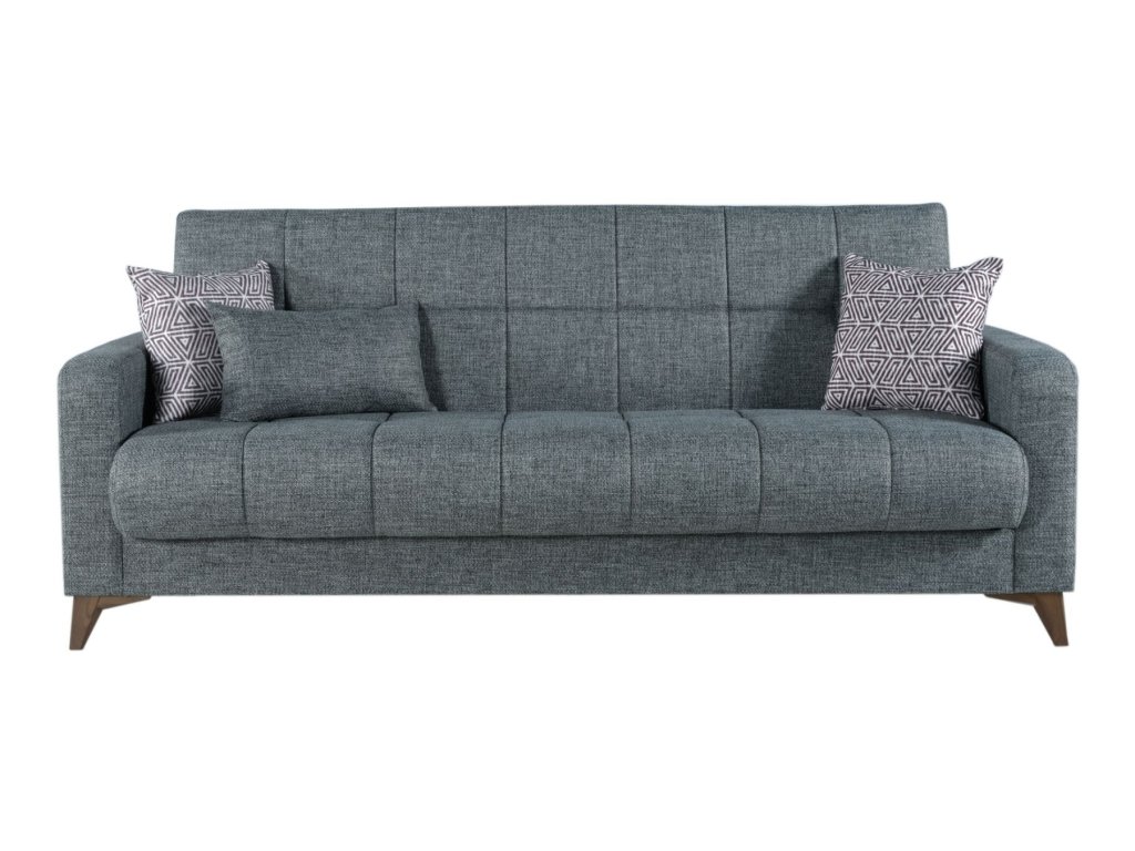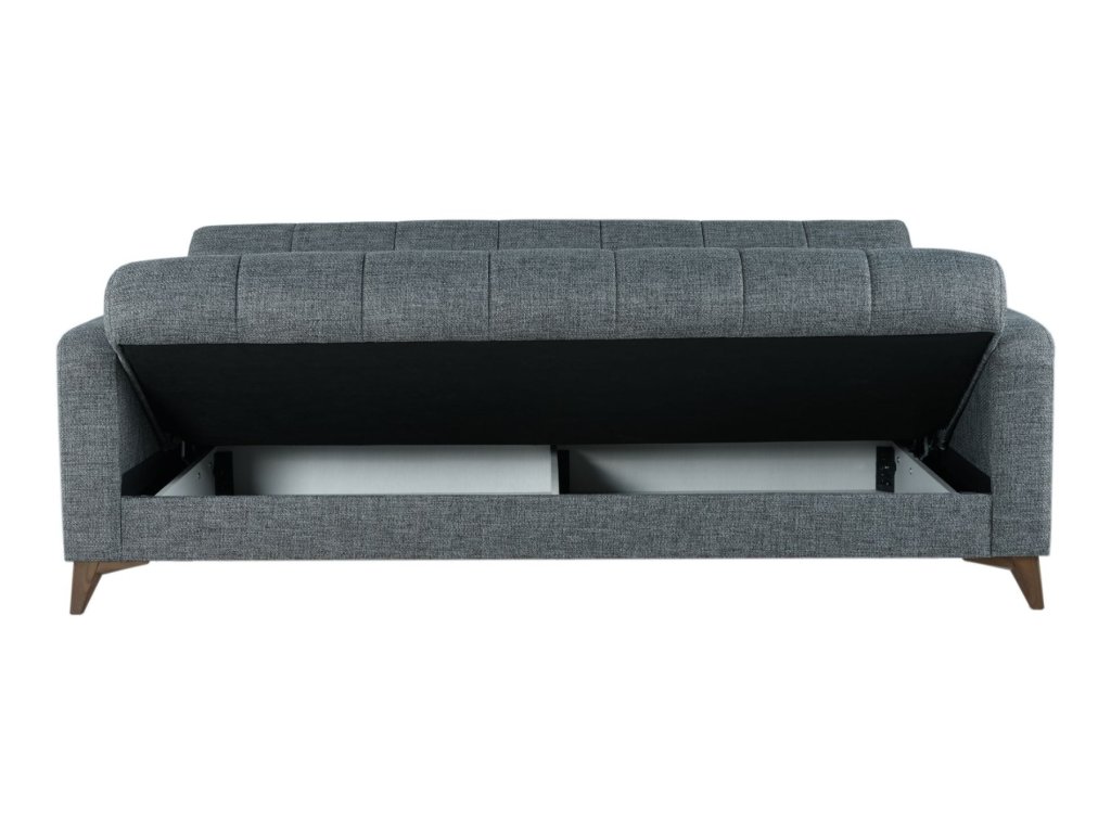Třímístná pohovka SOGAR s funkcí spaní a úložným prostorem bude praktickým kouskem do každého interiéru. Pohovka je ideální pro každodenní odpočinek, ale také vhodné místo ke spaní nejen pro vás, ale i vaše hosty. Za komfort sezení a spaní jsou zodpovědné pružiny Bonnell a vysoce kvalitní PUR pěna. ÚLOŽNÝ PROSTOR pod sedákem poskytuje dostatek prostoru pro uskladnění ložního prádla či přikrývek. Pohovka je čalouněna kvalitní potahovou látkou v šedé barvě a stojí na plastových nožičkách.