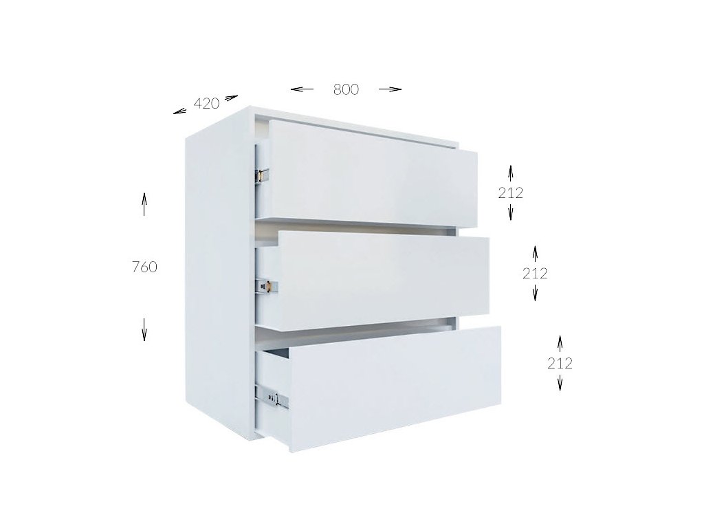 Bílá komoda SONIJA se třemi zásuvkami se hodí do každého interiéru. Díky svým praktickým rozměrům se vejde i do menších prostorů, přičemž poskytuje dostatek úložného prostoru. Díky nadčasovému bílému provedení se velice snadno kombinuje s jakýmkoli nábytkem. Potěší nejen svou elegancí, ale také mimořádně příznivou cenou.