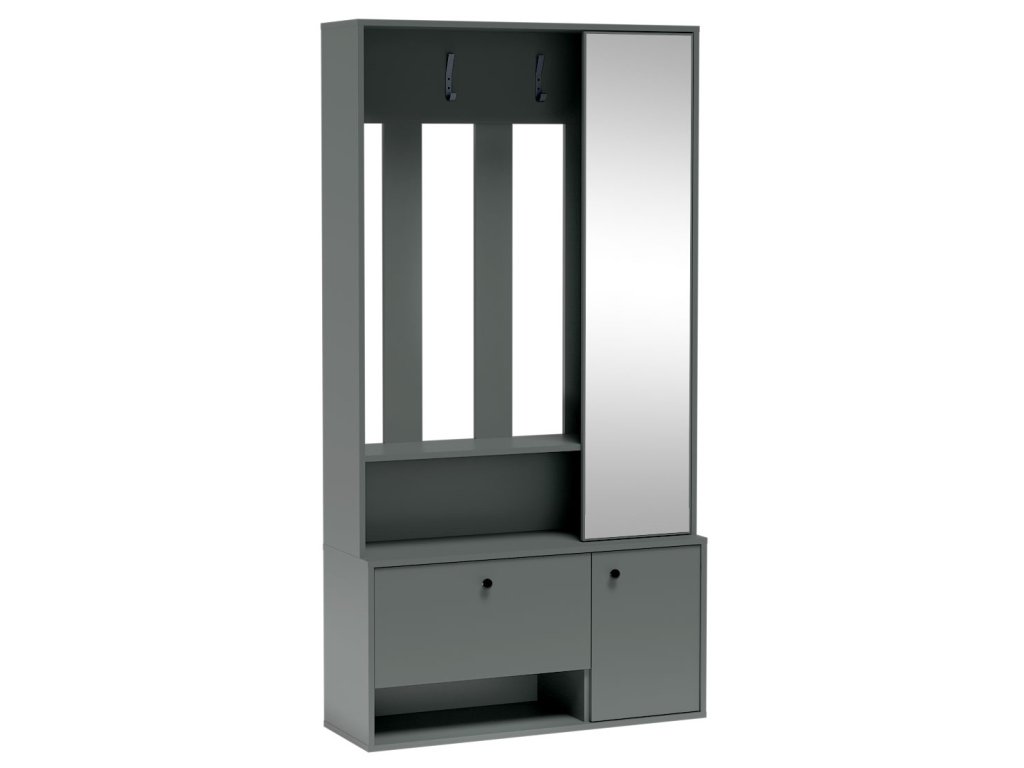 | Sestava obsahuje: | věšákový panel, 2 botník, skříň se zrcadlem a volným prostorem (Rozměry viz obrázek) |