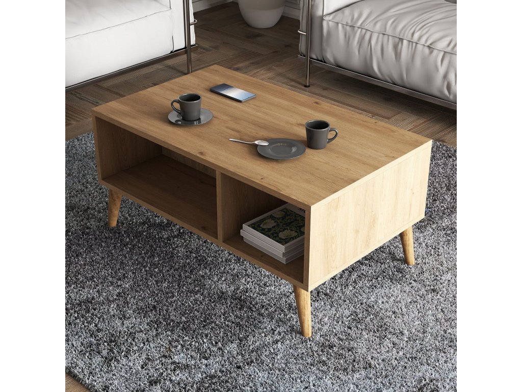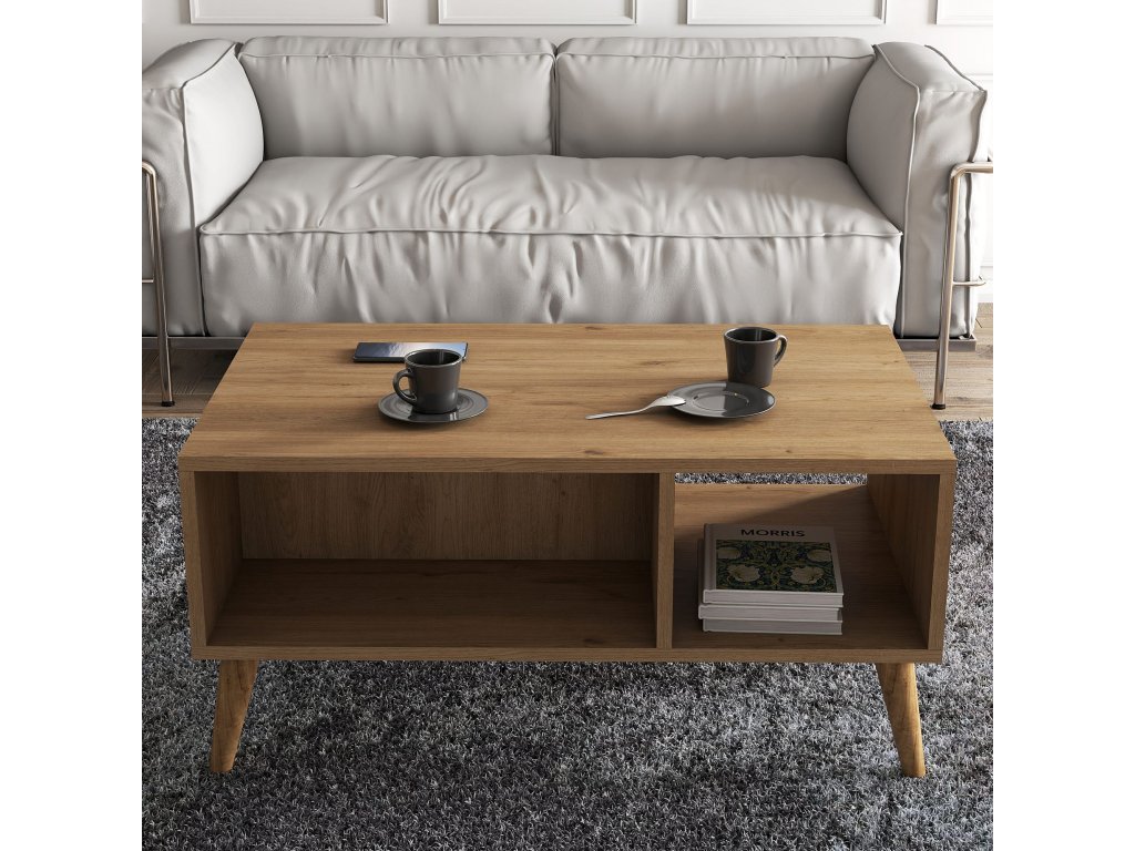 Náš konferenční stolek je vyroben ze 100% dřevotřísky s melaminovým povlakem, což zajišťuje výjimečnou kvalitu a odolnost. Tloušťka 18 mm dodává stolku robustnost, takže je ideální pro každodenní použití. Dřevěné nohy poskytují stabilitu a přírodní vzhled, zatímco dubová barva dodává vašemu prostoru nádech sofistikovanosti.