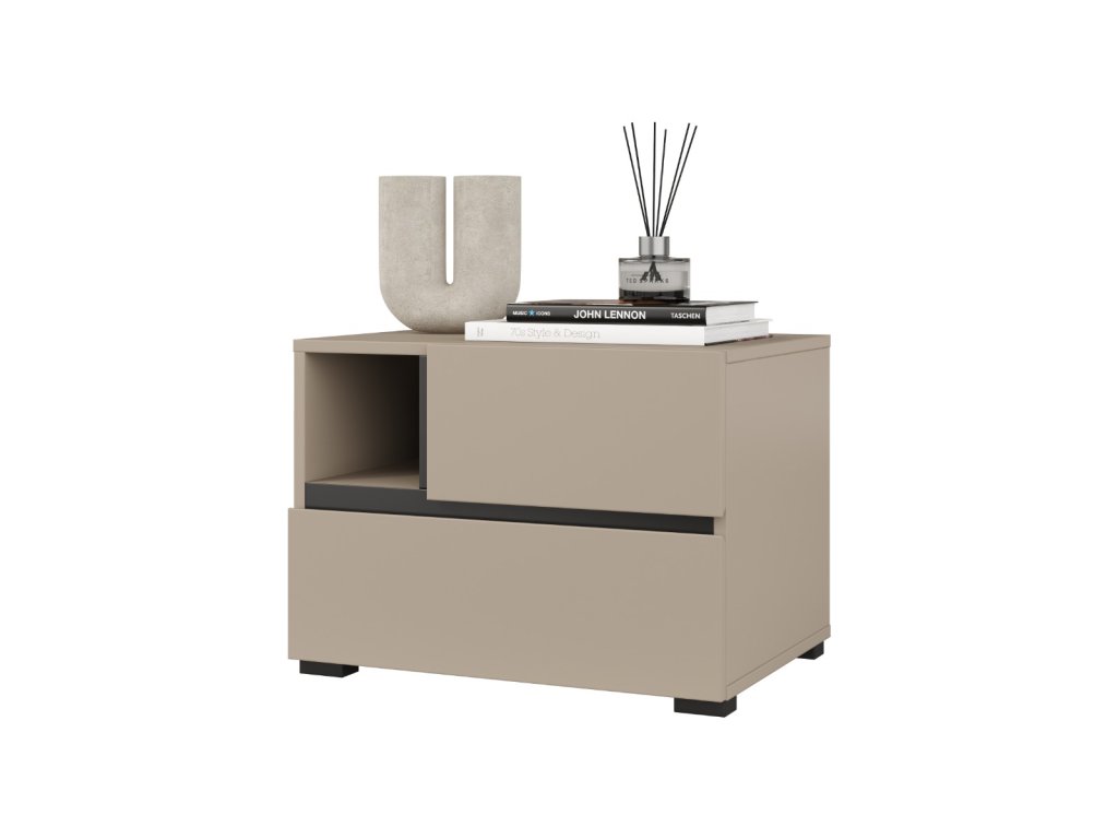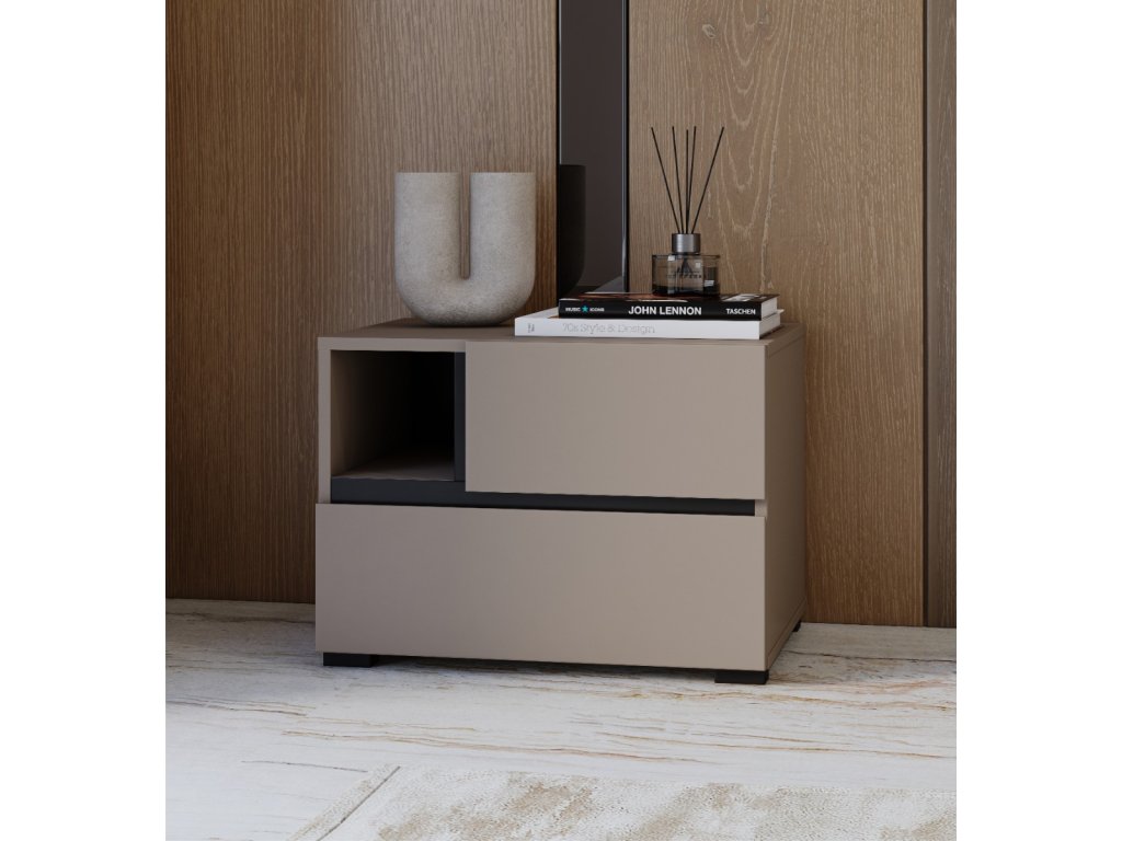 Noční stolek SQUARE kombinuje moderní design a praktickou funkčnost. Díky svému univerzálnímu vzhledu se skvěle hodí do každé ložnice a poskytuje dostatek úložného prostoru pro vaše nezbytnosti.