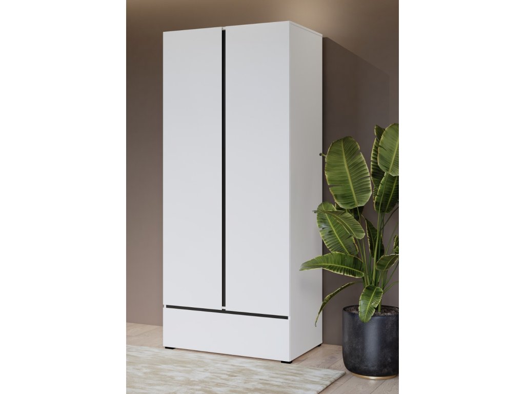 Skříň je navržena s důrazem na funkčnost a estetiku. Nabízí šatní tyč pro zavěšení oblečení, zásuvku pro menší předměty a polici pro organizaci dalších věcí. Je ideálním řešením pro každého, kdo hledá moderní a praktický kus nábytku do své ložnice.