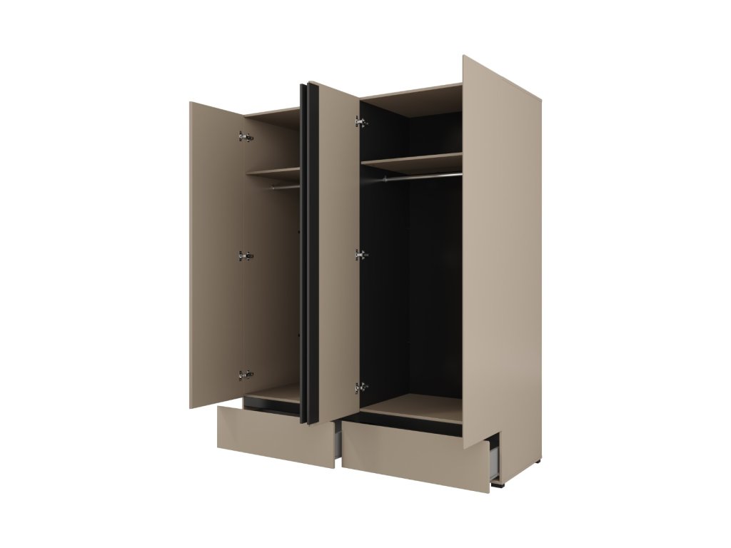 Skříň je navržena tak, aby maximalizovala úložný prostor a zároveň působila elegantně. Šatní tyče umožňují pohodlné zavěšení oblečení, zatímco zásuvky a police poskytují dostatek místa na složené oděvy nebo drobnosti. Moderní a praktické provedení dělá z této skříně ideální doplněk do každé ložnice.