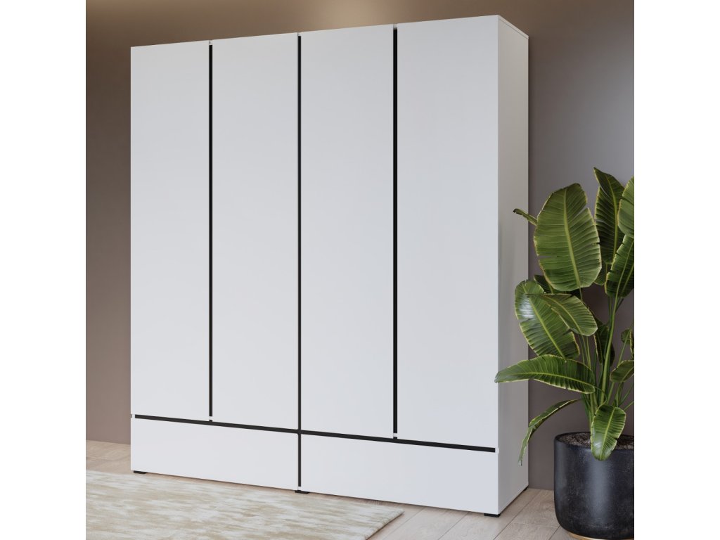 Skříň je navržena tak, aby maximalizovala úložný prostor a zároveň působila elegantně. Šatní tyče umožňují pohodlné zavěšení oblečení, zatímco zásuvky a police poskytují dostatek místa na složené oděvy nebo drobnosti. Moderní a praktické provedení dělá z této skříně ideální doplněk do každé ložnice.