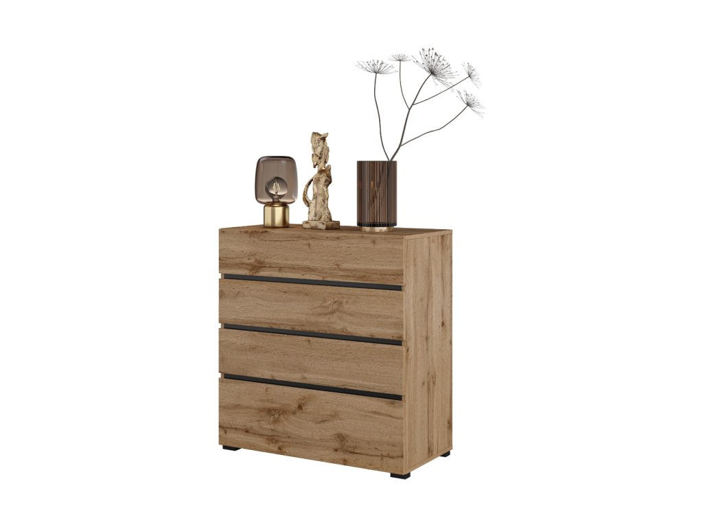 Díky čtyřem prostorným zásuvkám poskytuje komoda dostatek místa pro oblečení, dokumenty či další předměty. Kvalitní LTD materiál zajišťuje dlouhou životnost a snadnou údržbu. Nadčasová kombinace barev a moderní design činí tento kus nábytku ideálním řešením pro každou domácnost.