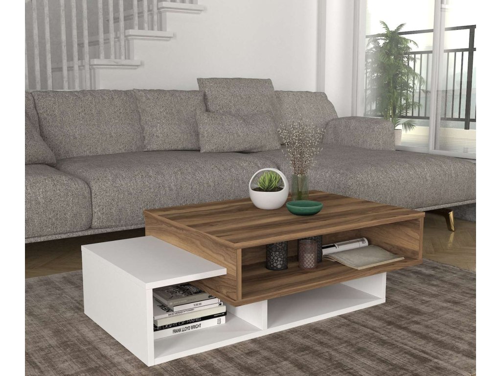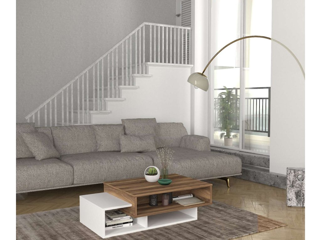 Představujeme STAB, konferenční stolek, který přináší do vašeho obývacího pokoje eleganci a funkčnost. Tento stylový nábytek v kombinaci bílé a ořechové barvy je navržen tak, aby poskytoval praktické a estetické řešení pro vaše potřeby.