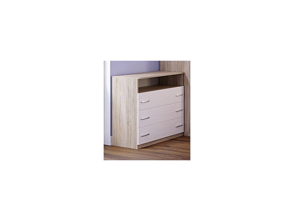 Jednoduchá komoda STANA v kontrastním barevném provedení dub sonoma/bílé dřevo poskytne dostatek prostoru pro uložení Vašich věcí díky třem zásuvkám, nad kterými je odkládací police. Úchyty jsou plastové. Je vyrobena z kvalitní 16 mm silné LTD desky nenáročné na udržování.