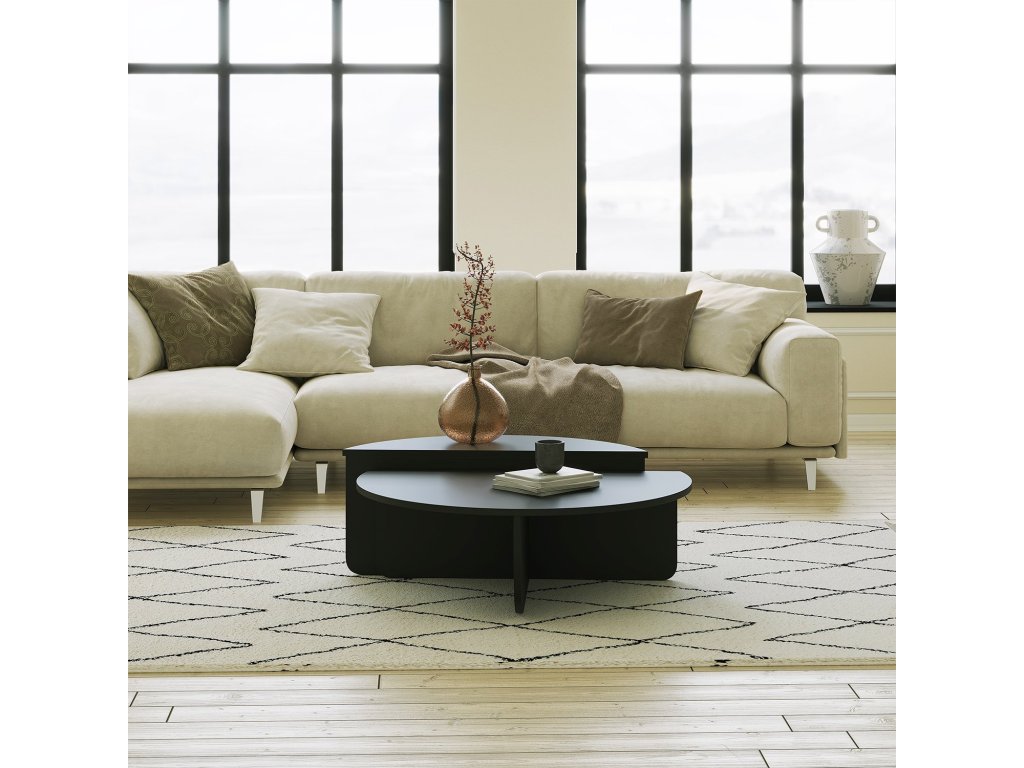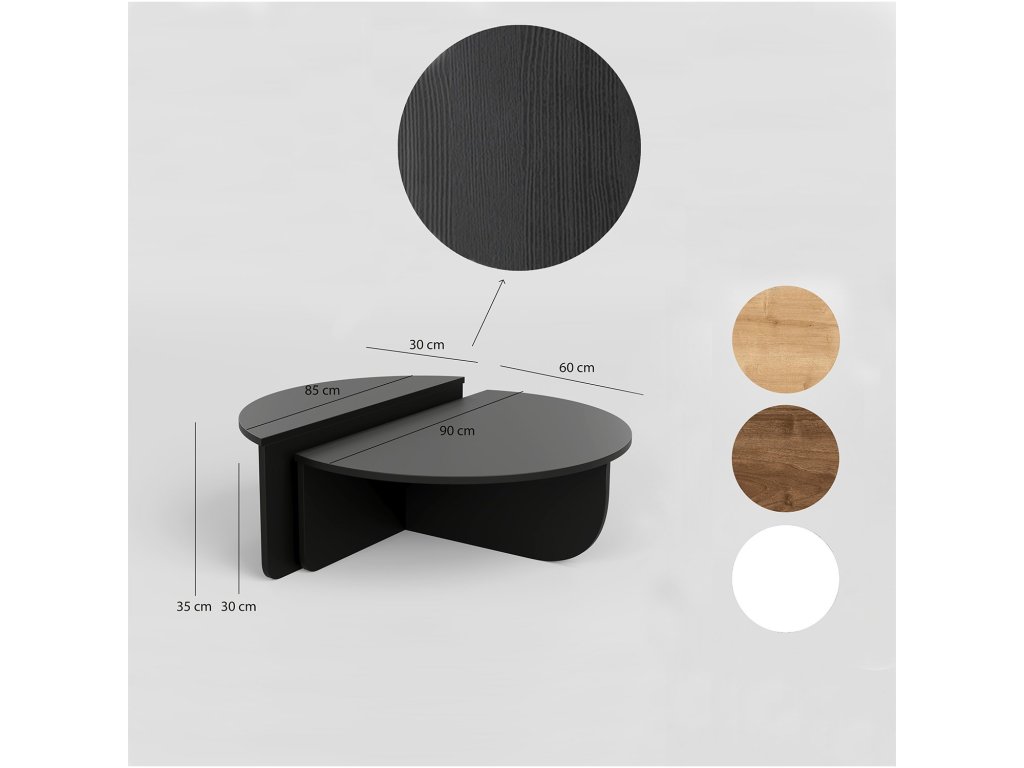 Stolek STEWIE je navržen s ohledem na praktičnost a moderní styl. Jeho složitelný design umožňuje snadné skladování a flexibilní použití, což oceníte v menších i větších prostorách. Atypický tvar a povrch v dekoru černá dodávají interiéru jedinečný a elegantní vzhled.