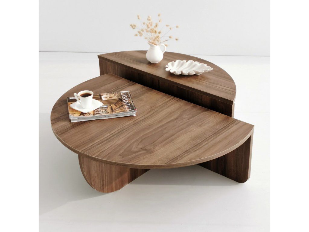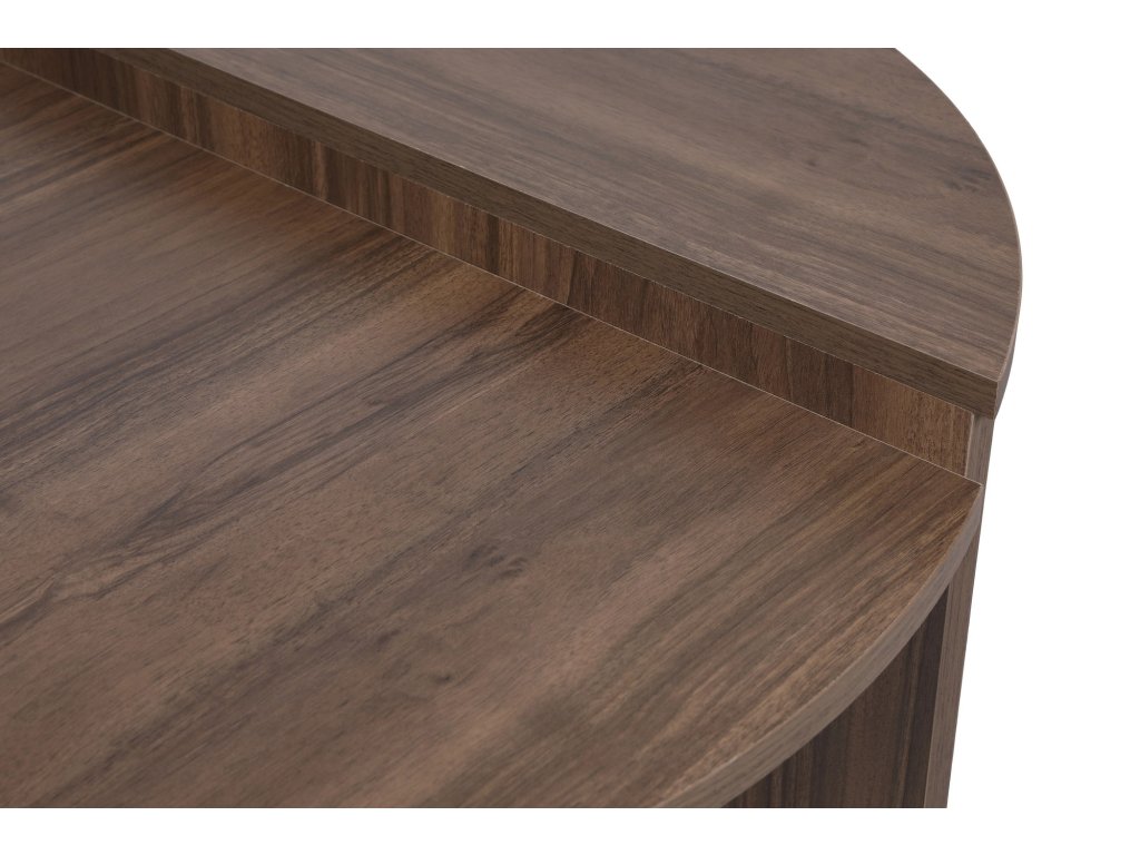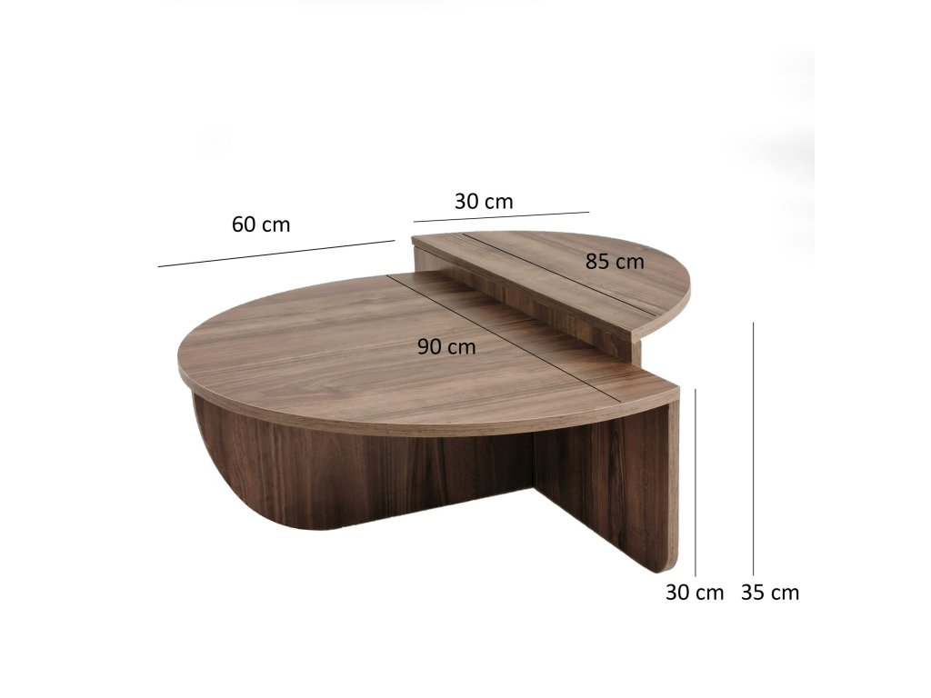 Stolek STEWIE je navržen s ohledem na praktičnost a moderní styl. Jeho složitelný design umožňuje snadné skladování a flexibilní použití, což oceníte v menších i větších prostorách. Atypický tvar a povrch v dekoru ořech dodávají interiéru jedinečný a elegantní vzhled.