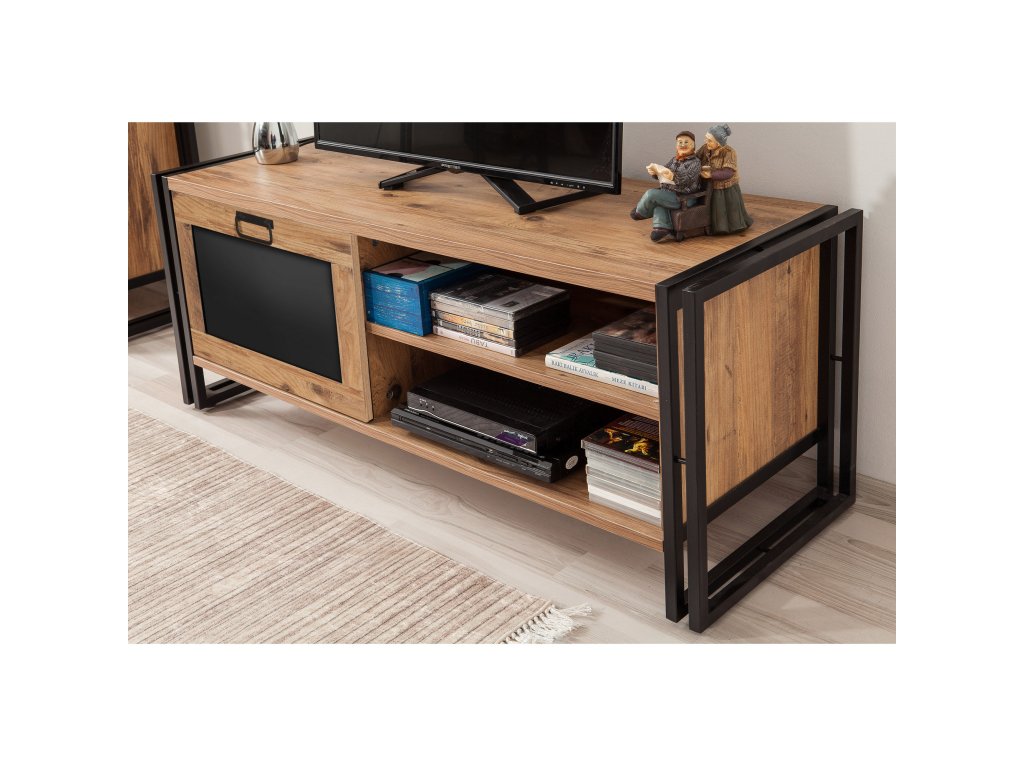 TV stolek STORE spojuje elegantní industriální styl s praktickým designem. Díky dekoru borovice a černým kovovým detailům se stane středobodem vašeho obývacího pokoje a nabízí dostatek prostoru pro uspořádání techniky i dekorací.