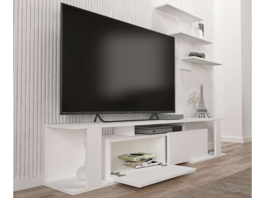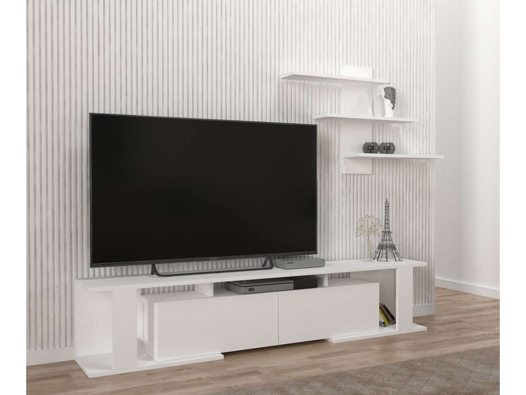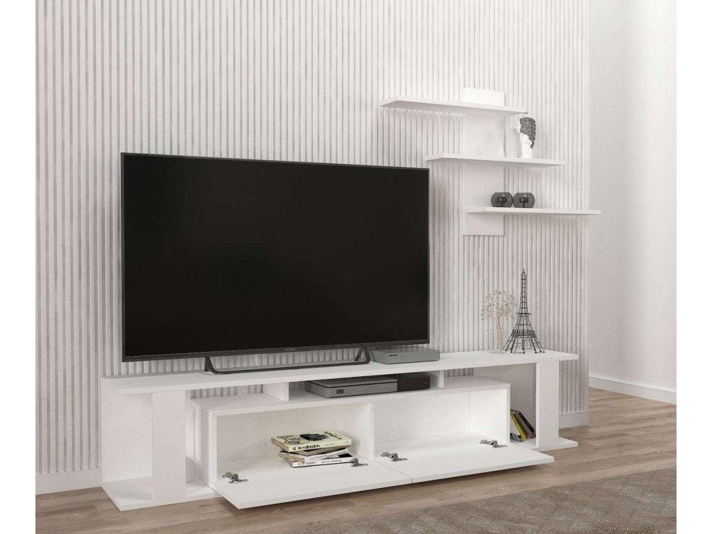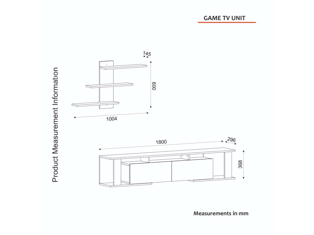 - Rozměry: TV stolek (180 x 29.6 x 36.8 cm) a nástěnná police (100.1 x 29.6 x 36.8 cm) poskytují dostatečný prostor pro vaši elektroniku a dekorace.