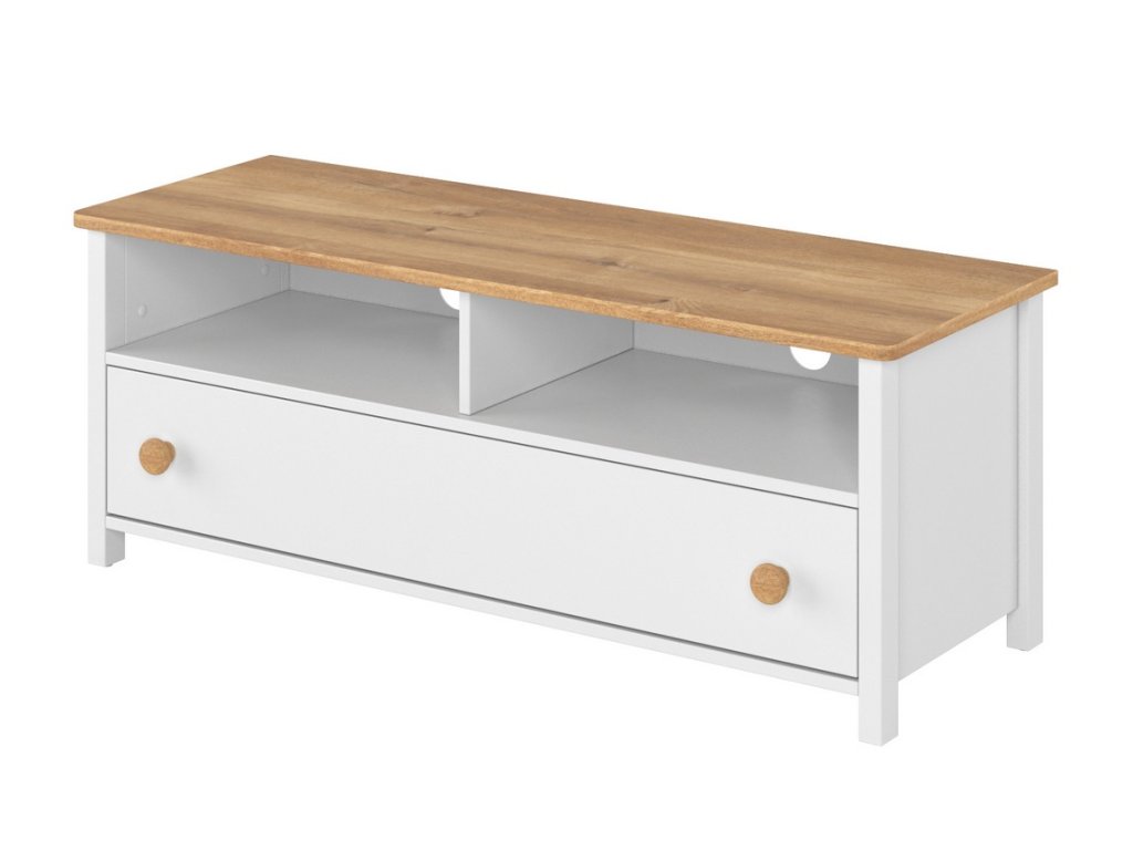 Televizní stolek se zásuvkou. Tento elegantní nábytek dodá romantickou atmosféru pokojíčku malé princezny i větší slečny. Stolek je vyroben z desky LTD v kombinaci s MDF v barvě bílé s doplňkovou barvou dub Nash ( 22 mm ). Stolek má ve spodní části zásuvku. Úchyty jsou plastové v barvě dub nash. Dodáváme v demontovaném stavu.Buďte první, kdo napíše příspěvek k této položce.