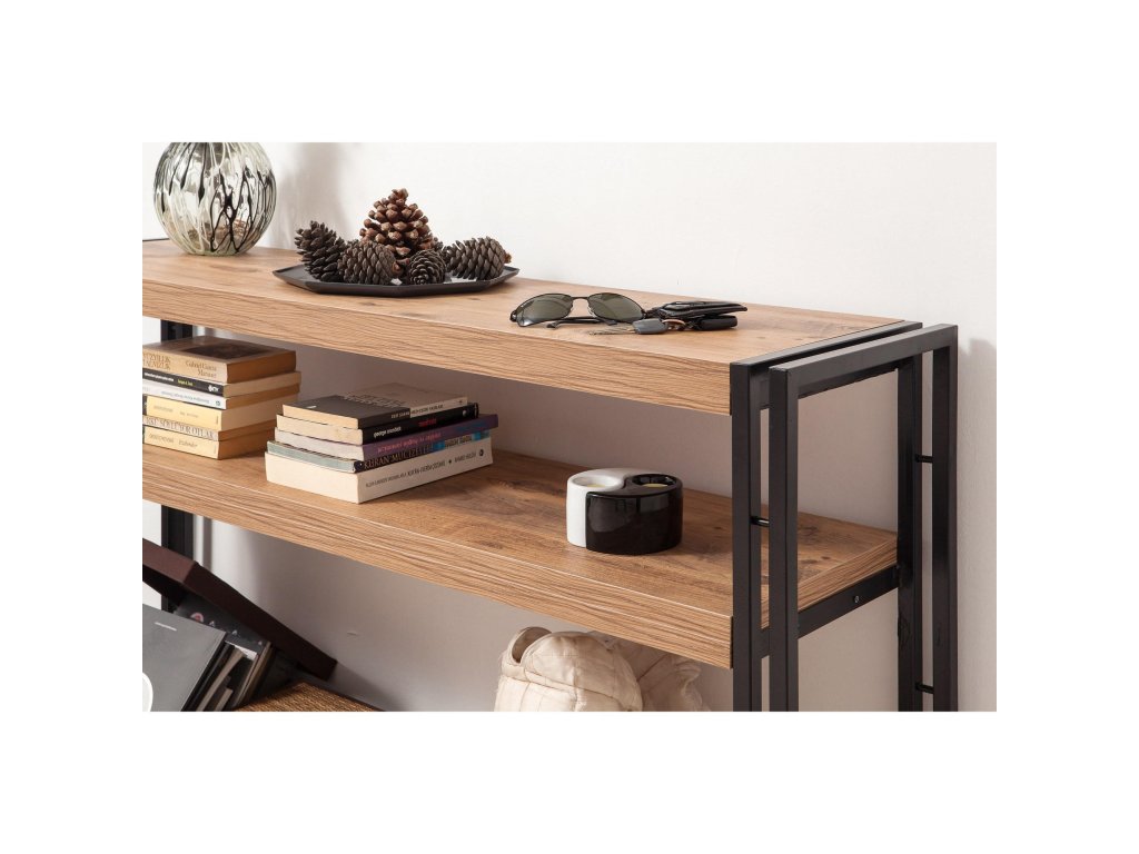 Konzolový stolek STOTCH přináší do vašeho domova moderní industriální styl a praktické využití. Díky kombinaci dekoru borovice a černých kovových prvků je ideální volbou pro předsíň i obývací pokoj.
