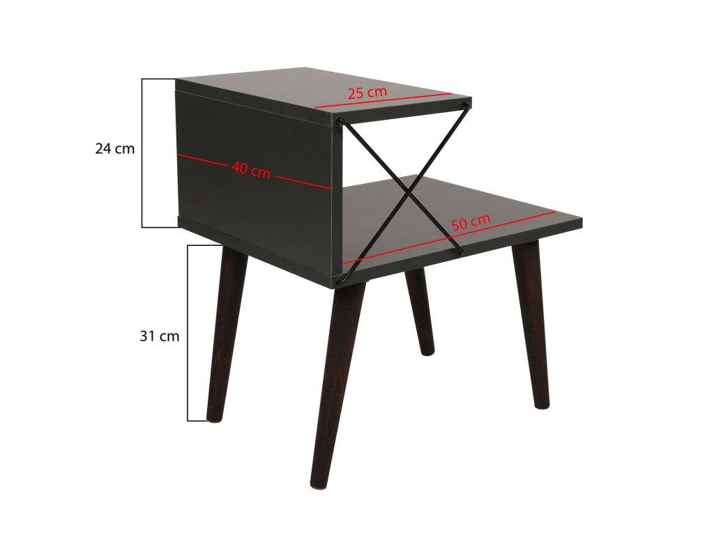 S mnoha policemi nabízí tento noční stolek dostatek úložného prostoru pro uložení vašich nezbytností uspořádaných a na dosah ruky. Spodní police o délce 50 cm poskytuje dostatek prostoru pro větší předměty, zatímco horní police o délce 25 cm je ideální pro menší předměty nebo dekorativní kousky.