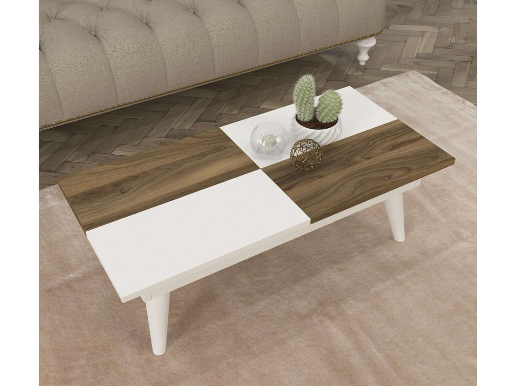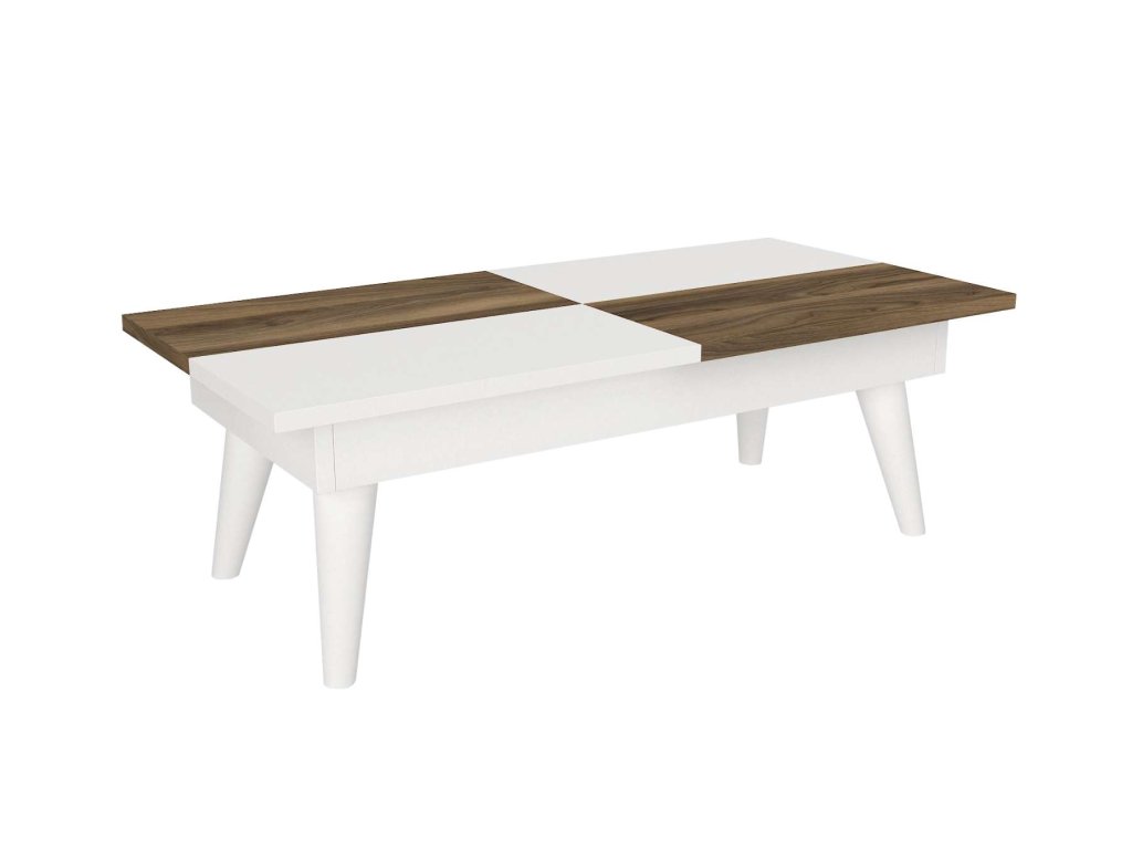 Stolek STRUM nabízí prostornou plochu pro vaše kávové šálky, knihy nebo dekorace. Kombinace bílé a ořechové barvy dodává stolku moderní a elegantní vzhled, který snadno zapadne do různých interiérových stylů.