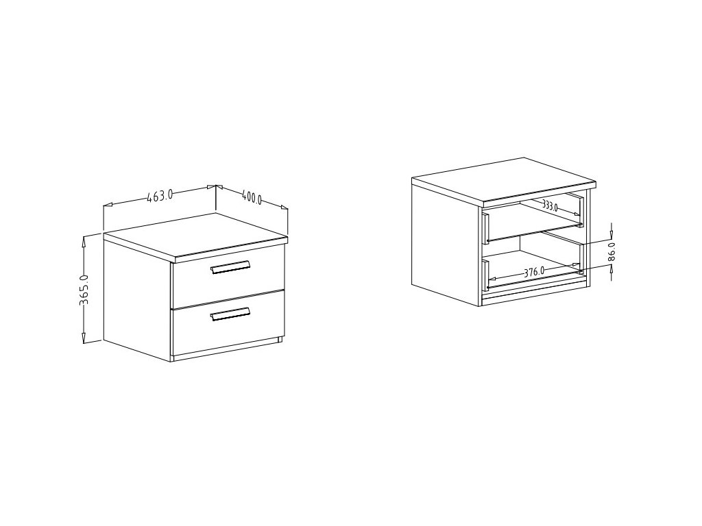 Noční stolek SYNONYM 22 má dvě praktické zásuvky.