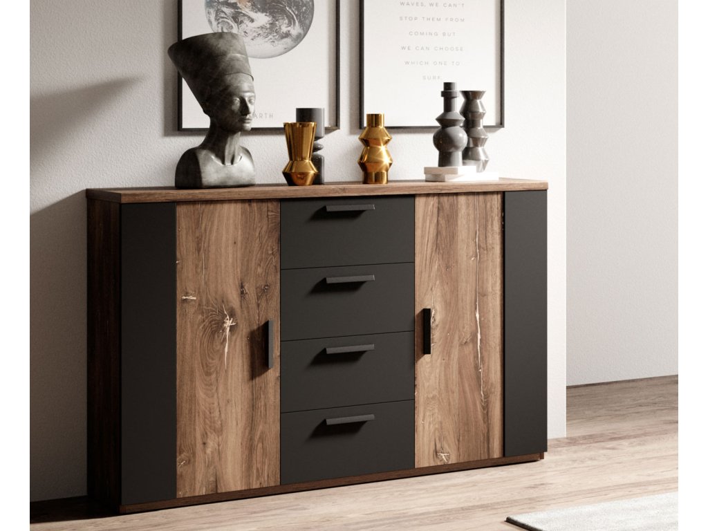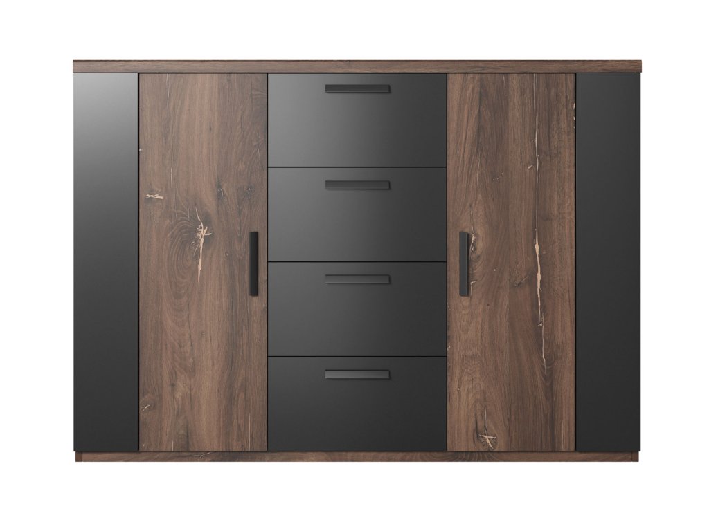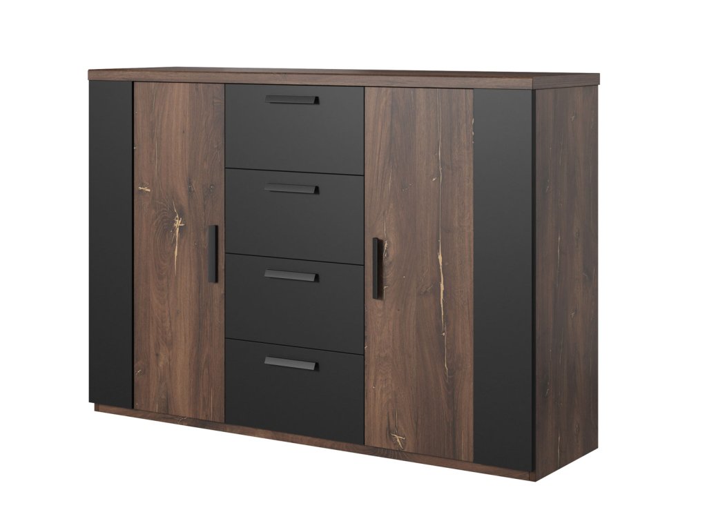 SYNONYM 26 2dveřová komoda se čtyřmi šuplíky, dub Flagstaff/ černá