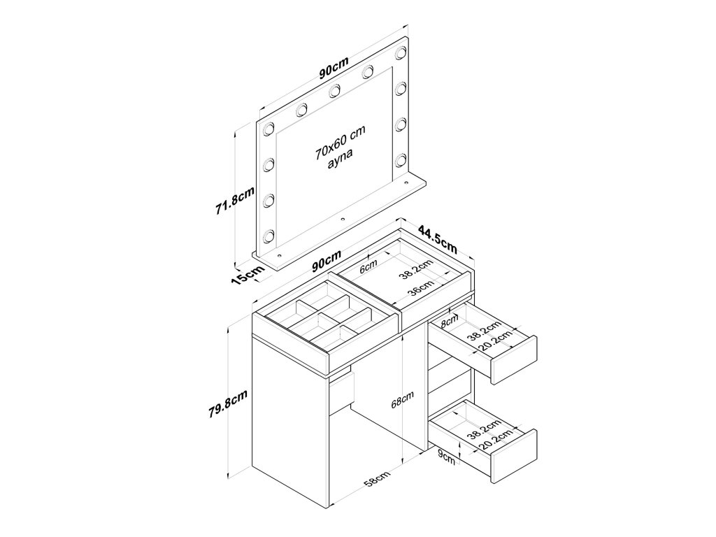Toaletní stolek TABLET je navržen tak, aby splňoval všechny vaše potřeby. Zásuvky poskytnou dostatek úložného prostoru pro kosmetiku, šperky nebo další doplňky, zatímco integrované zrcadlo usnadní každodenní péči.