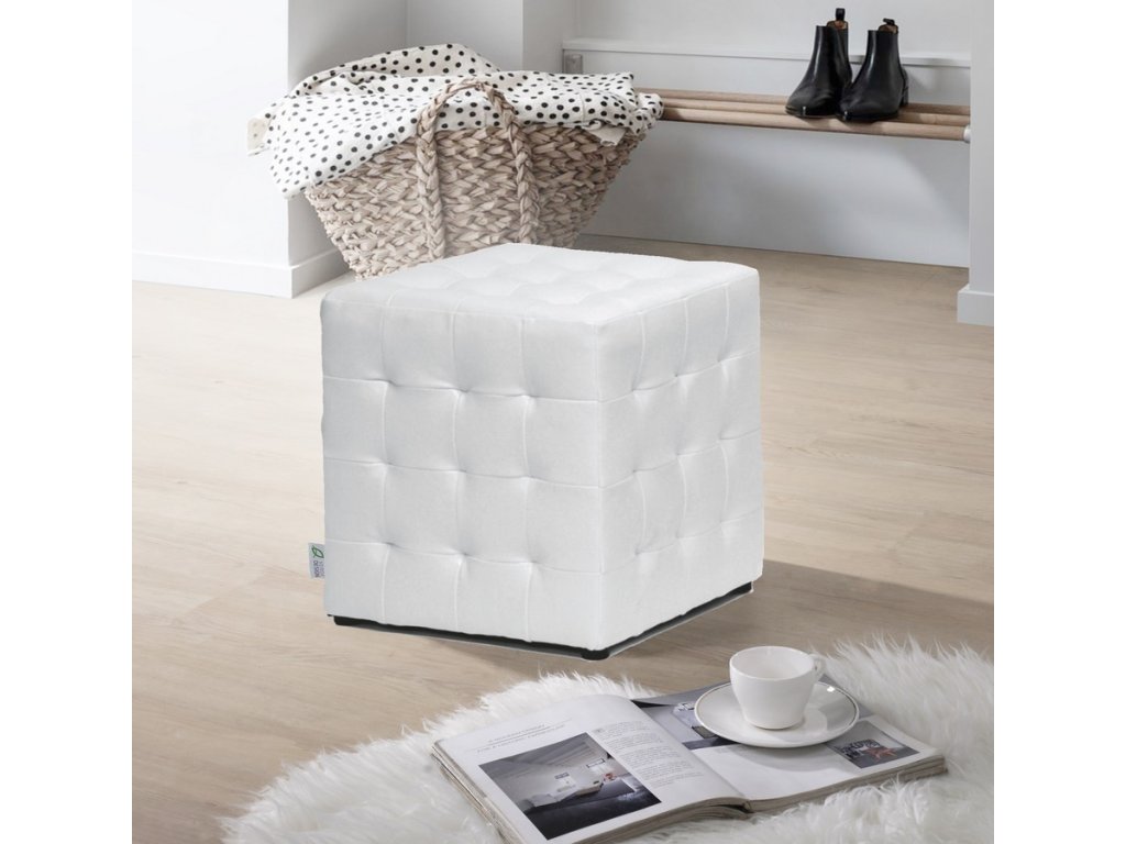 Elegantní čalouněná taburetka COBIX ve tvaru kostky v bílé ekokůži. Moderní prošívání dodává této taburetce nadčasový design. Vhodná do malých kaváren, barů, ale i obývacího pokoje či předsíně. Rozměry š/v/h 35,5/38,5/35,5.Doplňkové parametry