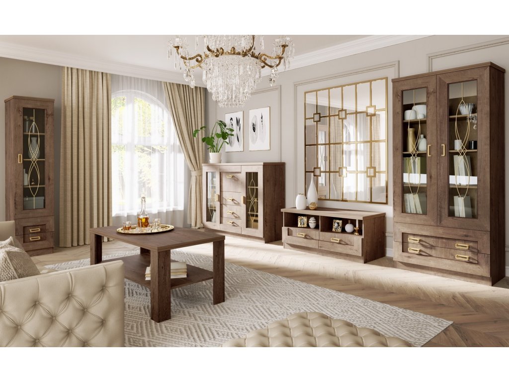 Psací stůl ze sektorové řady. Systém je exkluzivní kolekce navržena v duchu vintage. Celá řada se vyznačuje elegancí a jednoduchými tvary, které zaručují plné využití prostoru. Nábytek je vyroben z velmi kvalitní LTD o tloušťce 16 mm, horní deska zesílena na 32 mm, lišty na čele nábytku jsou MDF, hrany ABS. Tvrzené sklo ve vitrínách je jemně zdobené. Elegantní úchyty jsou z kovu. Barevné provedení dub lefkas. Dodáváme v demontovaném stavu. Opačná varianta stolu není bohužel možná.Doplňkové parametry