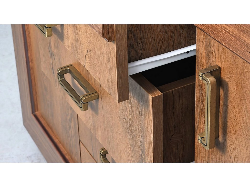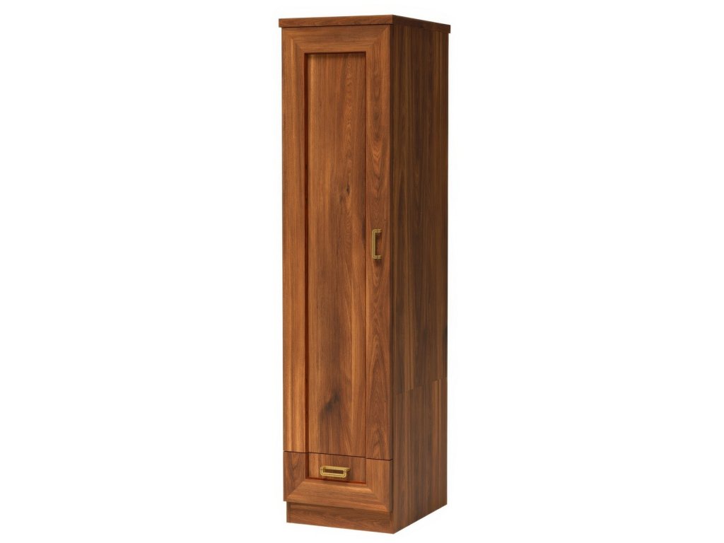 Skříň jednodveřová s 1 zásuvkou levá ze sektorové řady. Skříň má 1 dveře a 1 praktickou zásuvku, uvnitř je volný prostor se šatní tyčí. Systém je exkluzivní kolekce navržena v duchu vintage. Celá řada se vyznačuje elegancí a jednoduchými tvary, které zaručují plné využití prostoru. Nábytek je vyroben z velmi kvalitní LTD o tloušťce 16 mm, horní deska zesílena na 32 mm, lišty na čele nábytku jsou MDF, hrany ABS. Tvrzené sklo ve vitrínách je jemně zdobené. Elegantní úchyty jsou z kovu. Barevné provedení dub stoletý. Dodáváme v demontovaném stavu.Doplňkové parametry