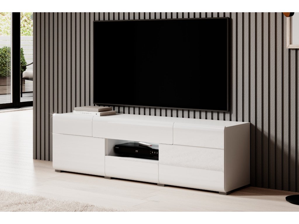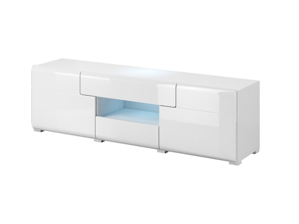 Lze ji využít jako stolek pod televizor, ale také samostatně. Je efektně členěná a barevně kombinovaná. Ve střední části nábytku je 1 horní a 1 dolní zásuvka s nosností 7 kg. Prostor mezi zásuvkami lze efektně osvětlit LED osvětlením, které lze dokoupit diskrétní LED osvětlení (není součástí nábytku). Po bocích je úložný prostor s dvířky.