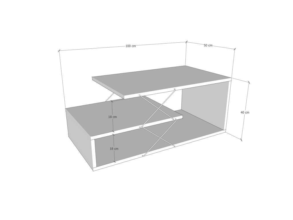 S šířkou 100 cm, výškou 40 cm a hloubkou 50 cm nabízí náš konferenční stolek dostatek plochy pro vystavení vašich oblíbených knih, časopisů nebo dekorativních předmětů. Výška police 18 cm poskytuje další úložný prostor a udržuje váš obývací prostor uklizený a organizovaný. Ať už pořádáte setkání, nebo si užíváte klidný večer doma, tento konferenční stolek je navržen tak, aby splnil všechny vaše potřeby.