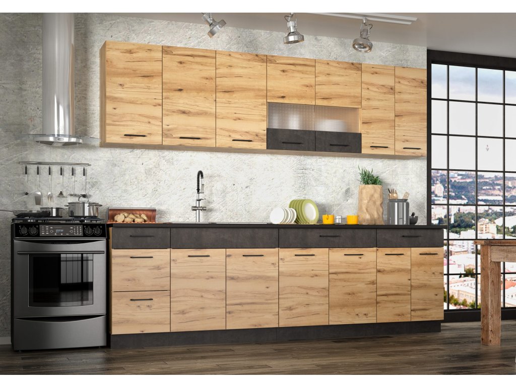 TATIANA, kuchyňská sestava 260, dub grenada-antracit