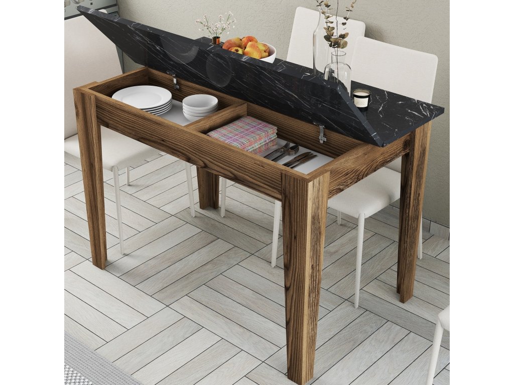 TEAM jídelní stůl s úložným prostorem, ořech / černá