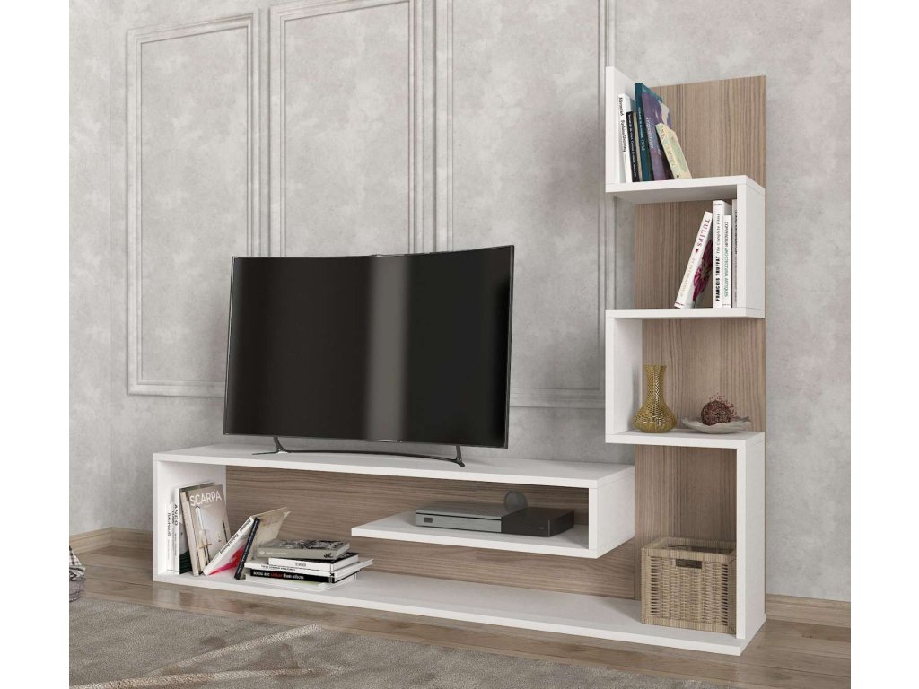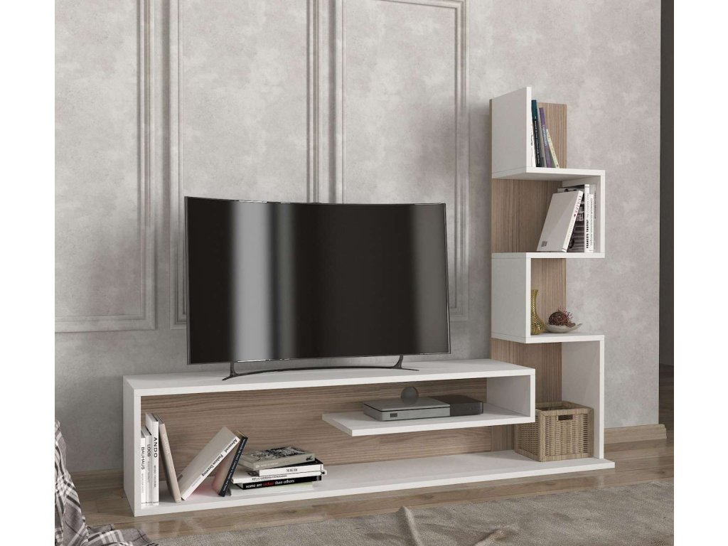 Seznamte se s TEHAN, TV stolkem, který je navržen tak, aby byl nejen praktický, ale i esteticky přitažlivý pro každý obývací pokoj. Jeho čistá bílá barva kombinovaná se světle hnědými detaily přináší do prostoru svěží a moderní vzhled, zatímco jeho rozměry jsou ideální pro umístění 55 palcové televize.