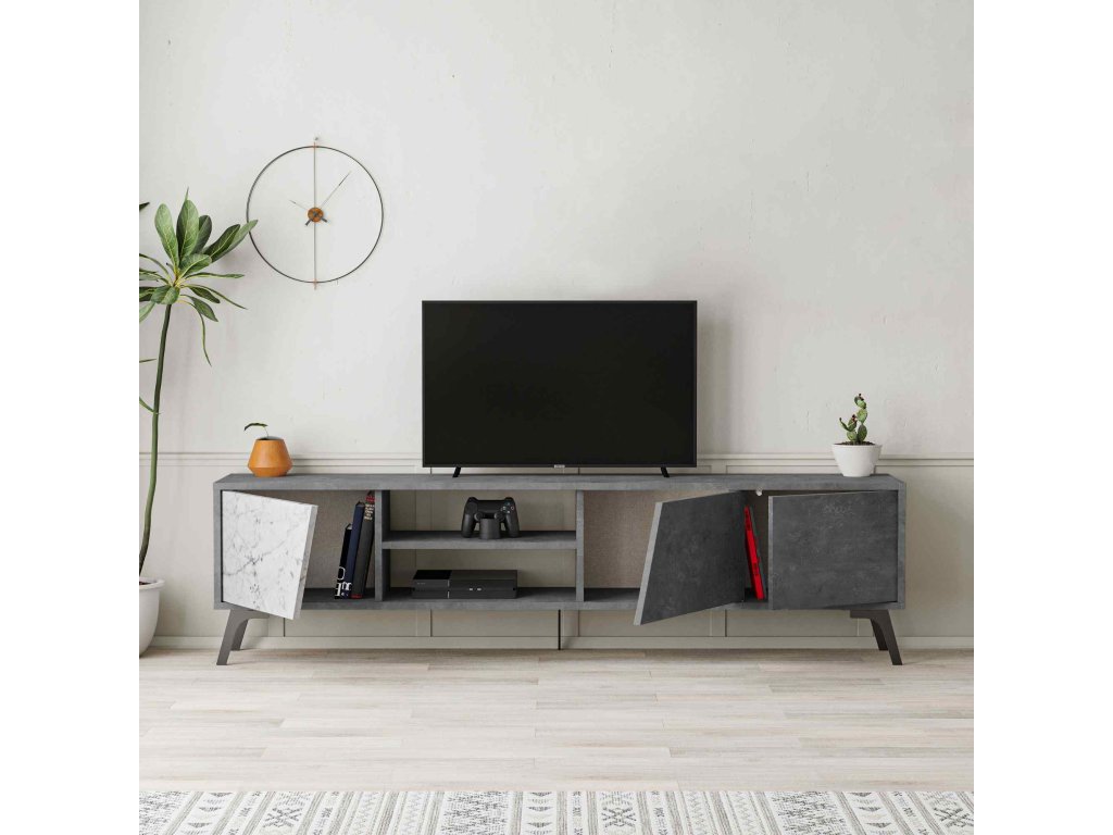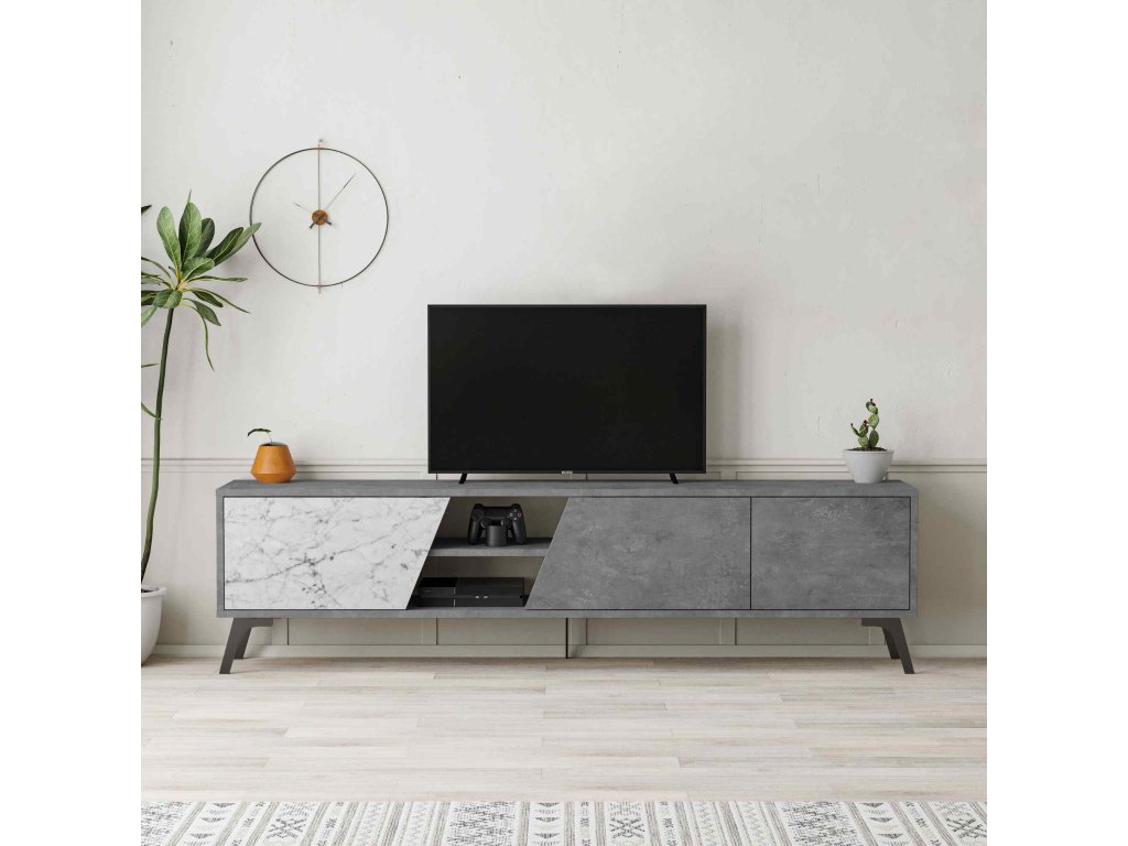 Televizní stolek DINO, retro šedá / bílá Carrara