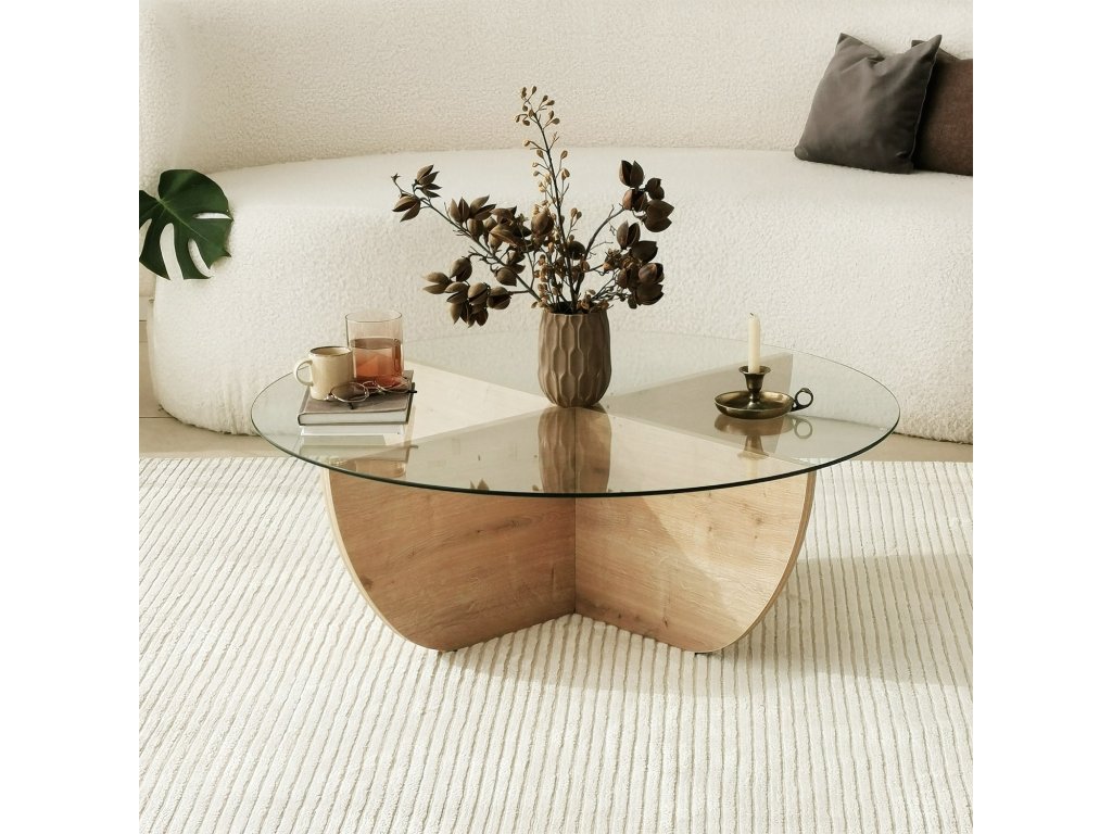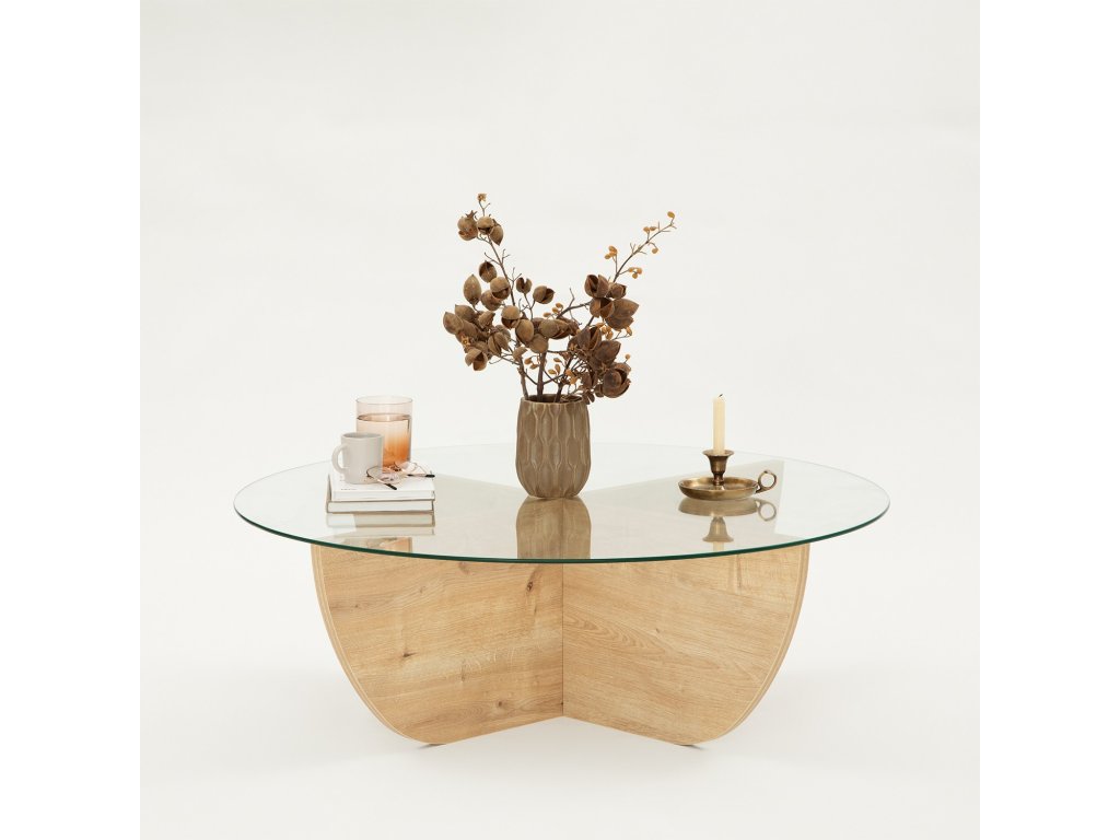Konferenční stolek TENANT vyniká svým kulatým designem a sofistikovaným dubovým dekorem Sapphire. Tento stylový kousek je ideální volbou pro váš obývací pokoj, kde propojuje eleganci a funkčnost.