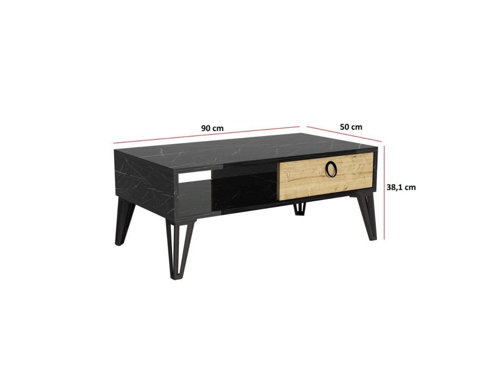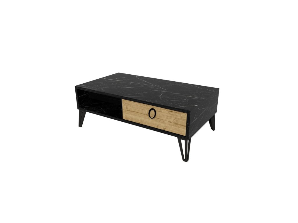 TERI konferenční stolek se šuplíkem, černý mramor / dub