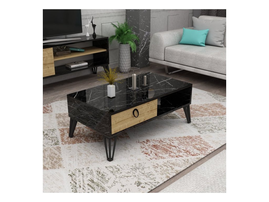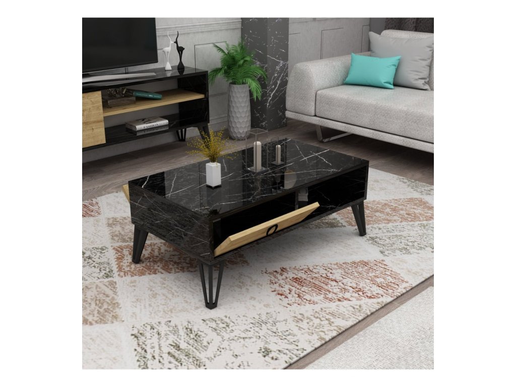 Stolek TERI je perfektní volbou pro ty, kteří chtějí spojit funkčnost s elegantním stylem. Díky zásuvce a polici nabízí praktické úložné řešení pro všechny drobnosti, které chcete mít po ruce. Robustní materiály a moderní design zaručují dlouhou životnost i estetický přínos. Pořiďte si konferenční stolek TERI a vytvořte si luxusní a útulný obývací pokoj!