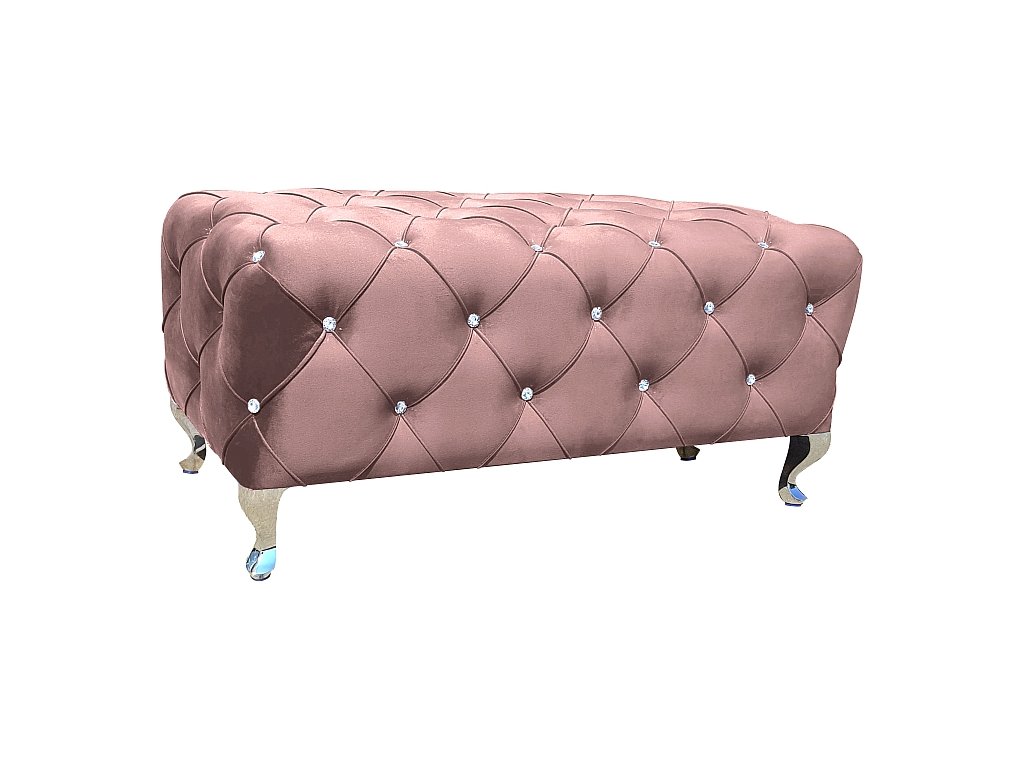 Najde své využití v každém stylovém obývacím pokoji nebo třeba i na chodbě namísto lavice. Taburetka THES je čalouněna sametovou látkou v barevném provedení antická růžová bluvel 52 s dekorativním prošíváním s kamínky. V nabídce je ve více barevných provedeních. Látka je příjemná na dotek.