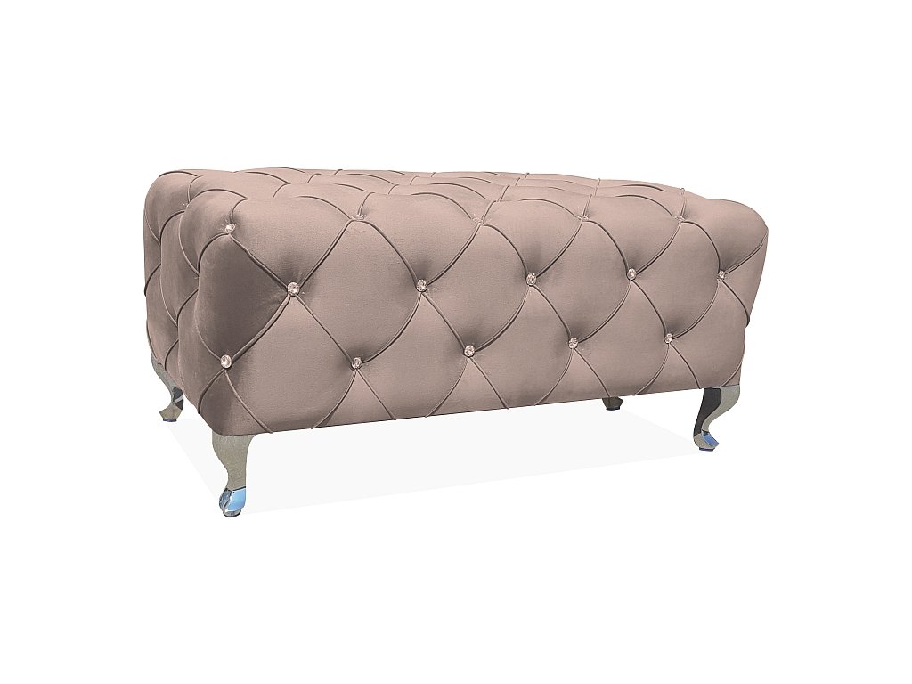 Najde své využití v každém stylovém obývacím pokoji nebo třeba i na chodbě namísto lavice. Taburetka THES je čalouněna sametovou látkou v barevném odstínu béžový bluvel 28 s dekorativním prošíváním s kamínky. V nabídce je ve více barevných provedeních. Látka je příjemná na dotek.
