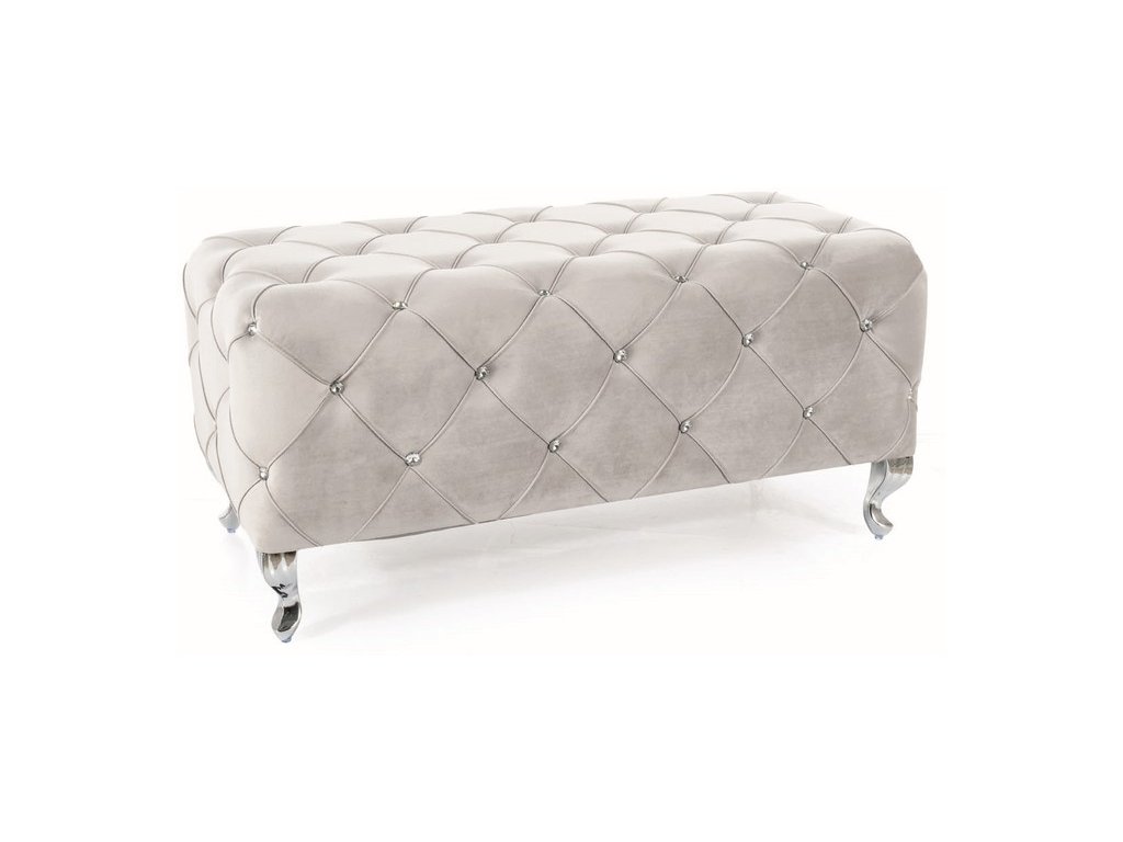 Najde své využití v každém stylovém obývacím pokoji nebo třeba i na chodbě namísto lavice. Taburetka THES je čalouněna sametovou látkou v barevném odstínu světle šedá Bluvel 03 s dekorativním prošíváním s kamínky. V nabídce je ve více barevných provedeních. Látka je příjemná na dotek.