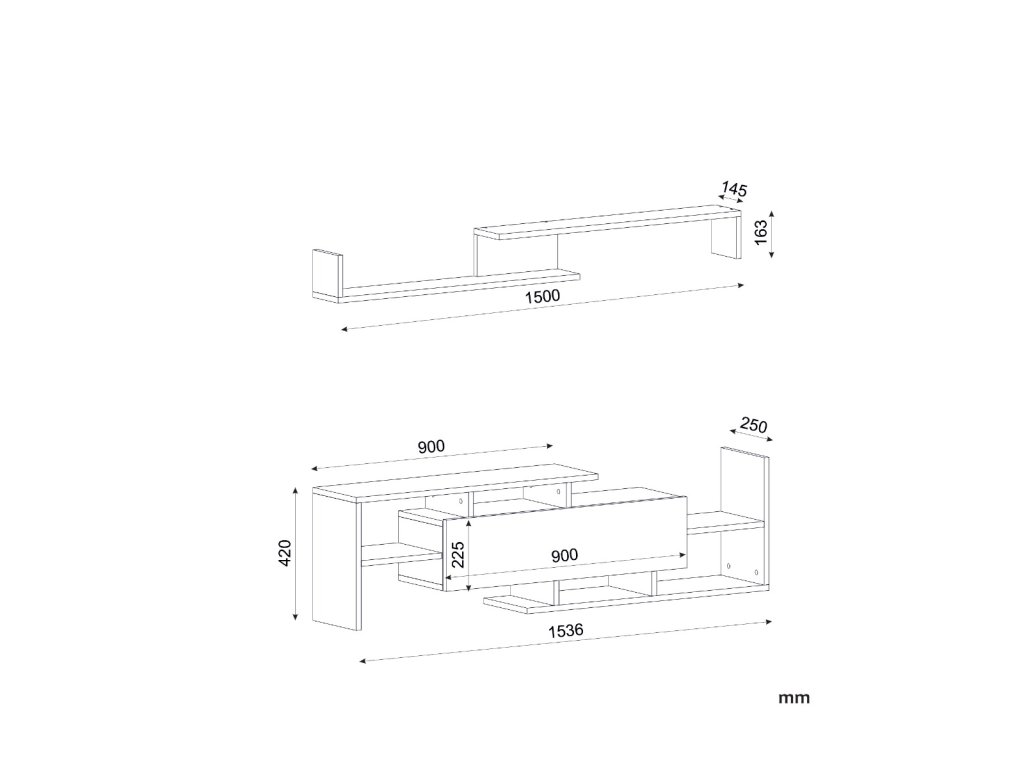 Jednoduchá a malá obývací stěna THINK je v moderním provedení a zajímavém designu. Díky svým rozměrům se skvěle hodí do malých interiérů. TV stěna obsahuje praktickou závěsnou polici, která výborně poslouží k odložení knih či dekorací. Tv stěna obsahuje množství otevřených polic a také uzavřené skříňky s výklopnými dvířky, díky čemuž máte i přes malé rozměry dostatek úložného prostoru.