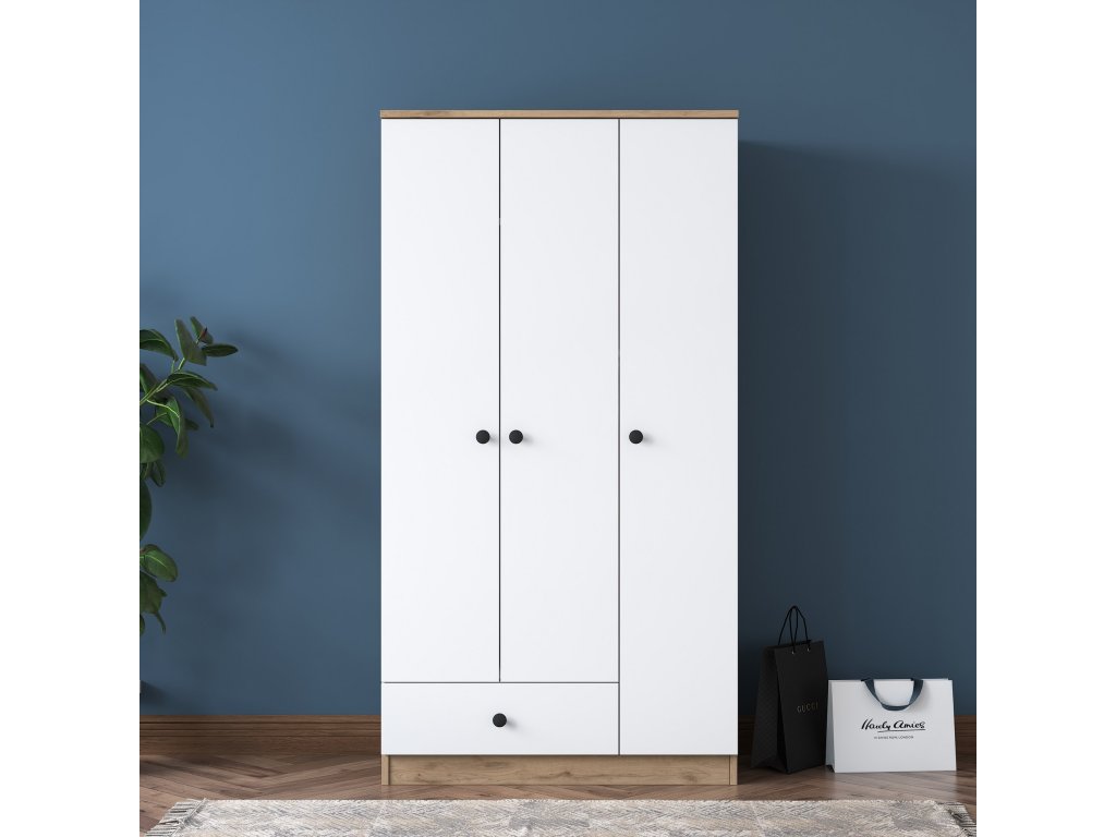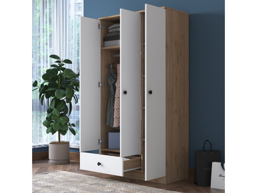Šatní skříň TITANITE je stylovým řešením pro organizaci vašeho oblečení a doplňků. Kombinace bílé barvy a dekoru ořechu dodává interiéru moderní a příjemnou atmosféru. Díky promyšlenému uspořádání poskytuje dostatek prostoru pro vše, co potřebujete mít přehledně uložené.