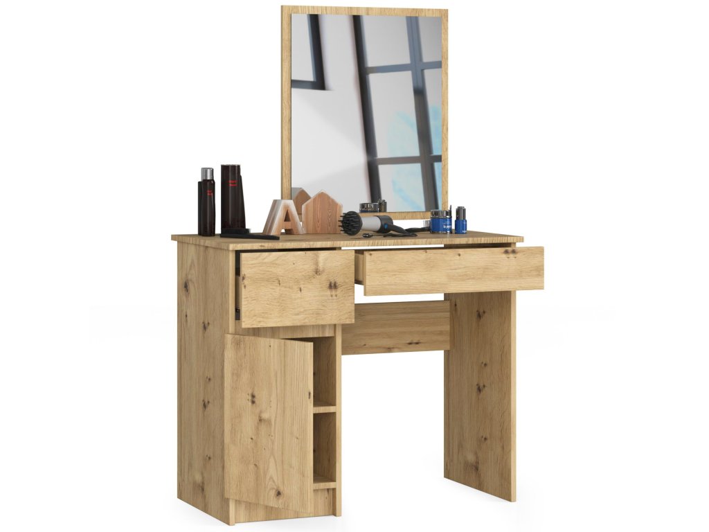 - Vybavení: Dvě zásuvky pro vaše drobnosti, plná dvířka (skříňka) pro větší předměty a zrcadlo pro vaše denní rituály krásy.