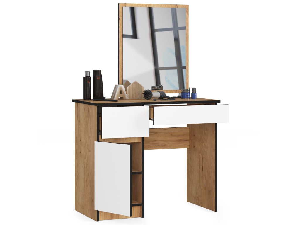 Přinášíme vám dokonalou harmonii mezi moderním designem a praktičností s toaletním stolkem PAVEL500L. Tento nádherný kousek nábytku kombinuje hluboký tón dubu craft s čistou bílou, což vytváří elegantní a nadčasový vzhled pro vaši ložnici.