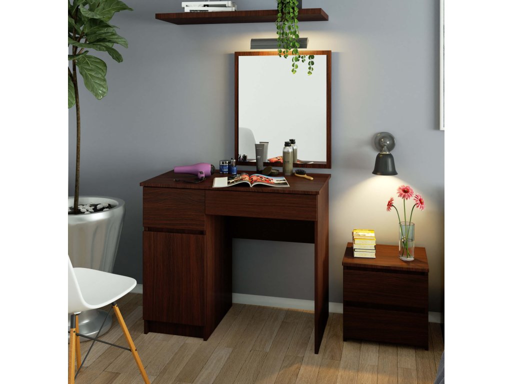 Představujeme PAVEL500L - toaletní stolek, jehož temné tóny wenge barvy přidají hloubku a luxusní nádech do vaší ložnice. Elegantní a sofistikovaný, tento kus nábytku je dokonalým spojením funkčnosti a stylu.