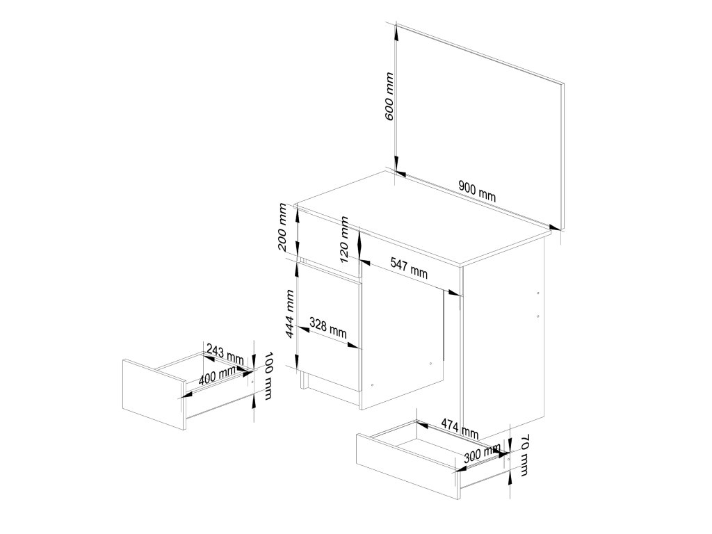PAVEL900L je navržen tak, aby vyhovoval všem vašim potřebám spojeným s úložným prostorem. Díky dvěma zásuvkám, skříňce a dvěma policím můžete vše snadno organizovat. Velké zrcadlo zvyšuje jeho praktičnost a činí z něj nezbytnou část každé ložnice.