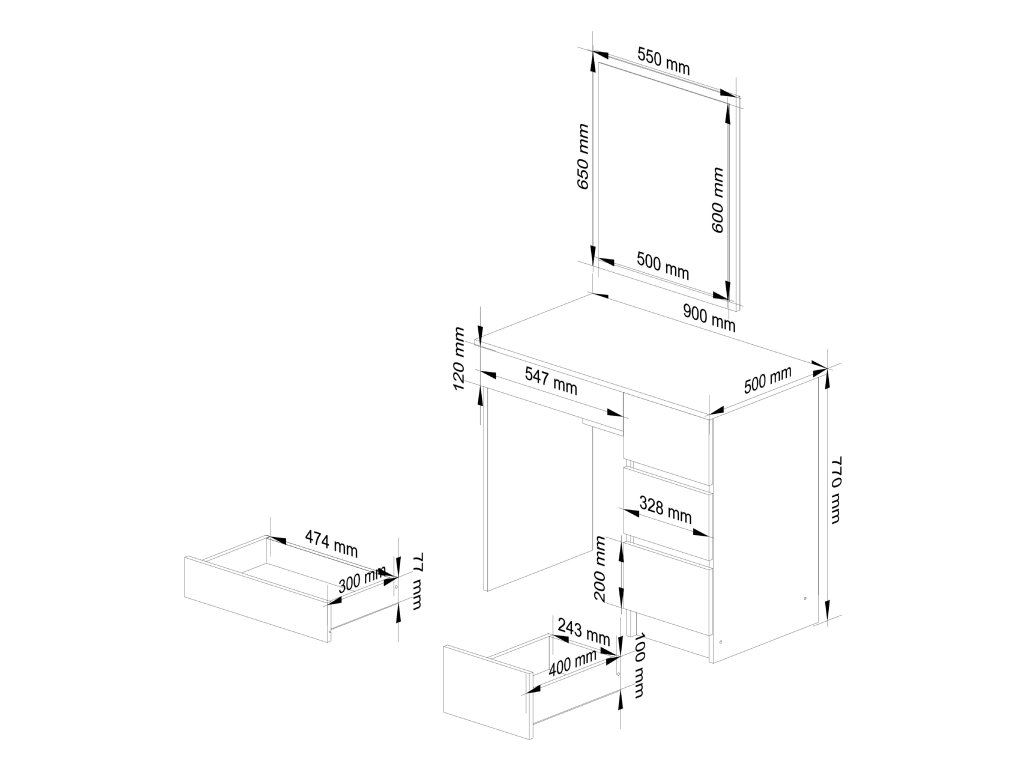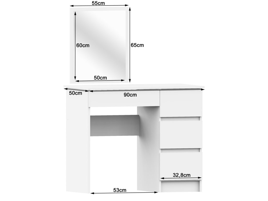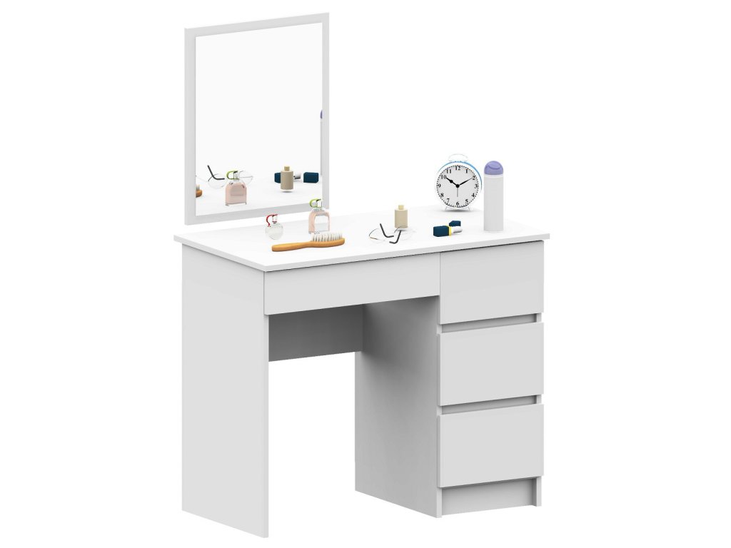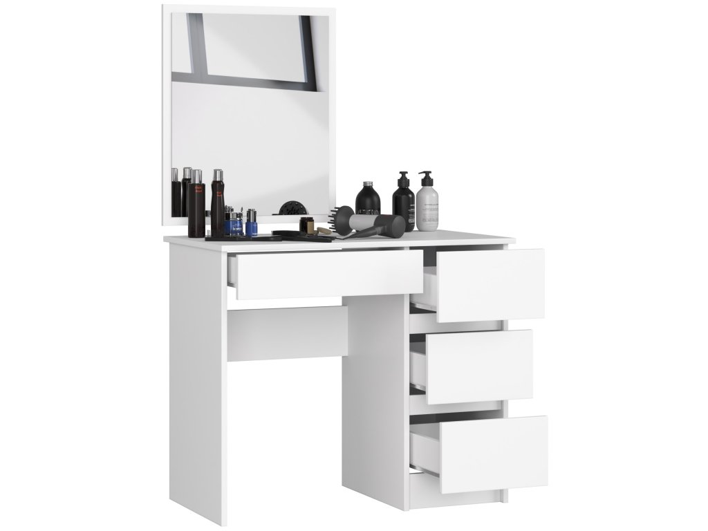 S čtyřmi prostornými zásuvkami nabízí TOM500P dostatek úložného prostoru pro všechny vaše kosmetické potřeby. Velké zrcadlo vám pak umožní perfektní pohled při líčení či úpravě účesu. Čistý a jednoduchý design v bílé barvě se skvěle hodí do každé moderně zařízené ložnice.