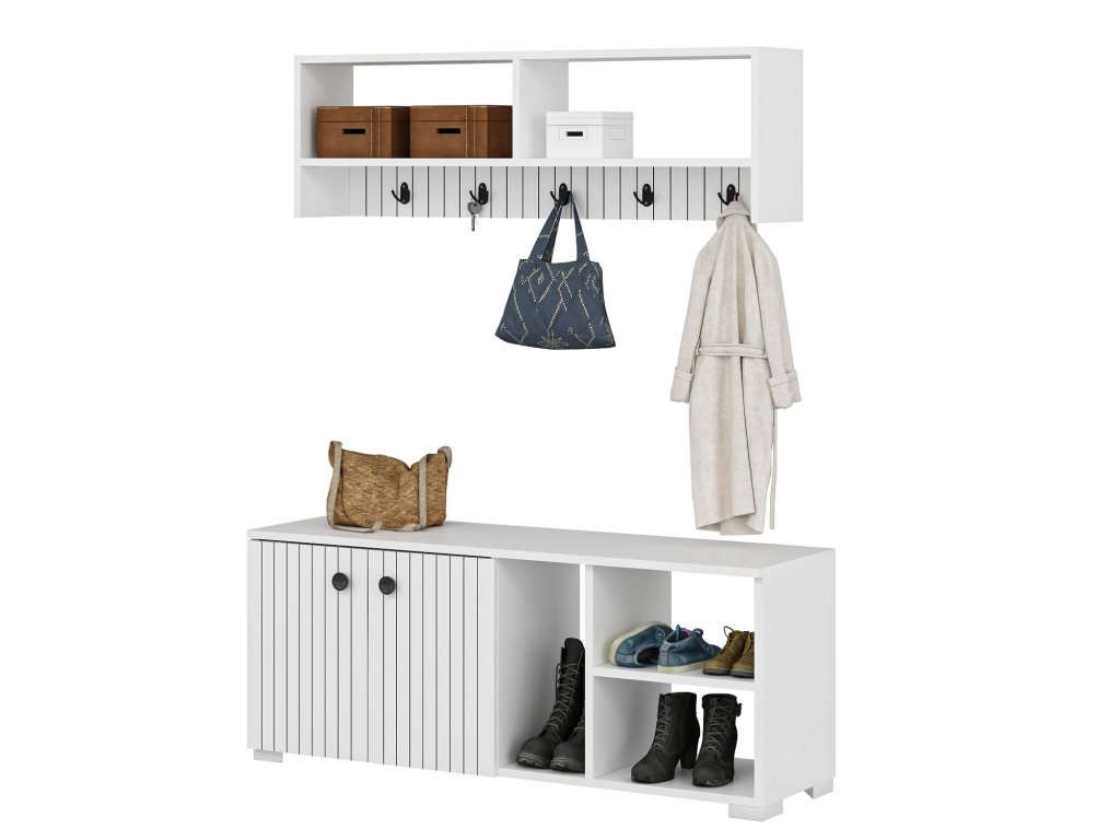 Sestava TOLEDO je vyrobena z kvalitního materiálu LTD o tloušťce 18 mm, což zajišťuje její pevnost a dlouhou životnost. Moderní design doplňují praktické plastové úchytky a kovový věšák. Tento set obsahuje závěsný věšák a botník, což umožňuje efektivní organizaci vašeho prostoru.