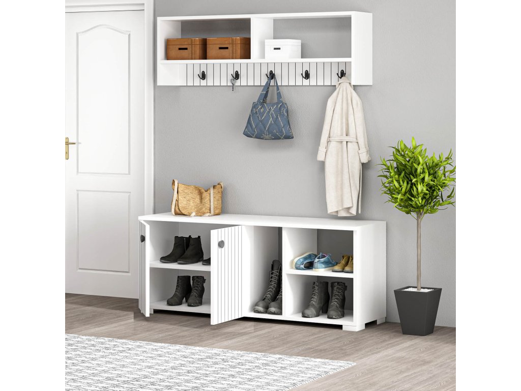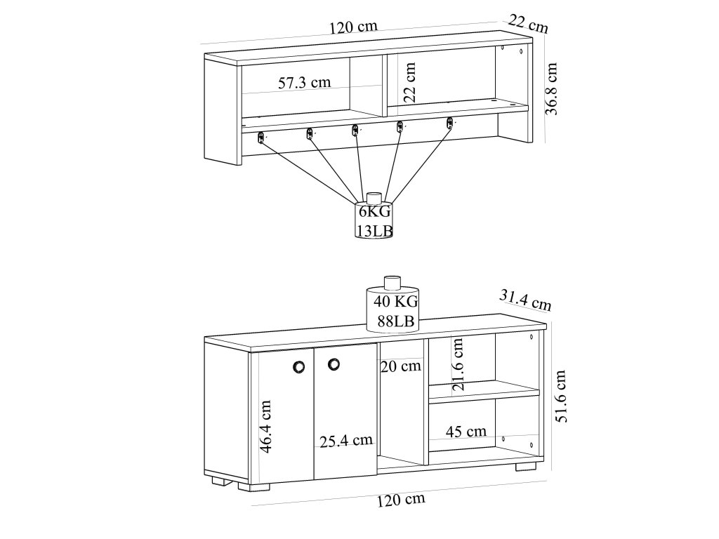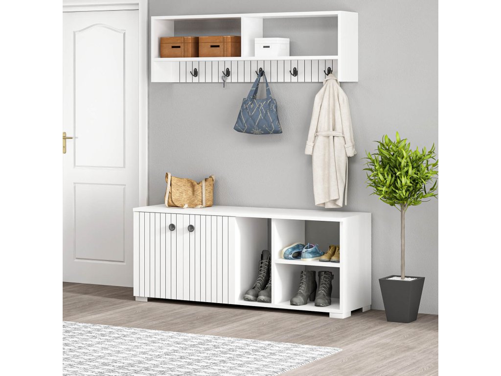 Předsíňová sestava TOLEDO je ideálním řešením pro ty, kteří hledají stylový a zároveň funkční nábytek do předsíně. Díky svým rozměrům 51.6 x 120 x 31.4 cm se hodí i do menších prostor a nabízí dostatek úložného místa pro vaše oblečení a obuv.