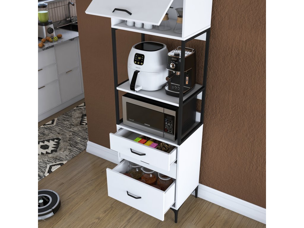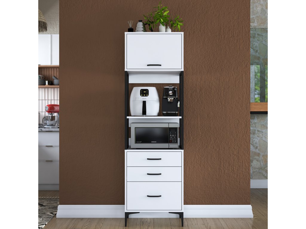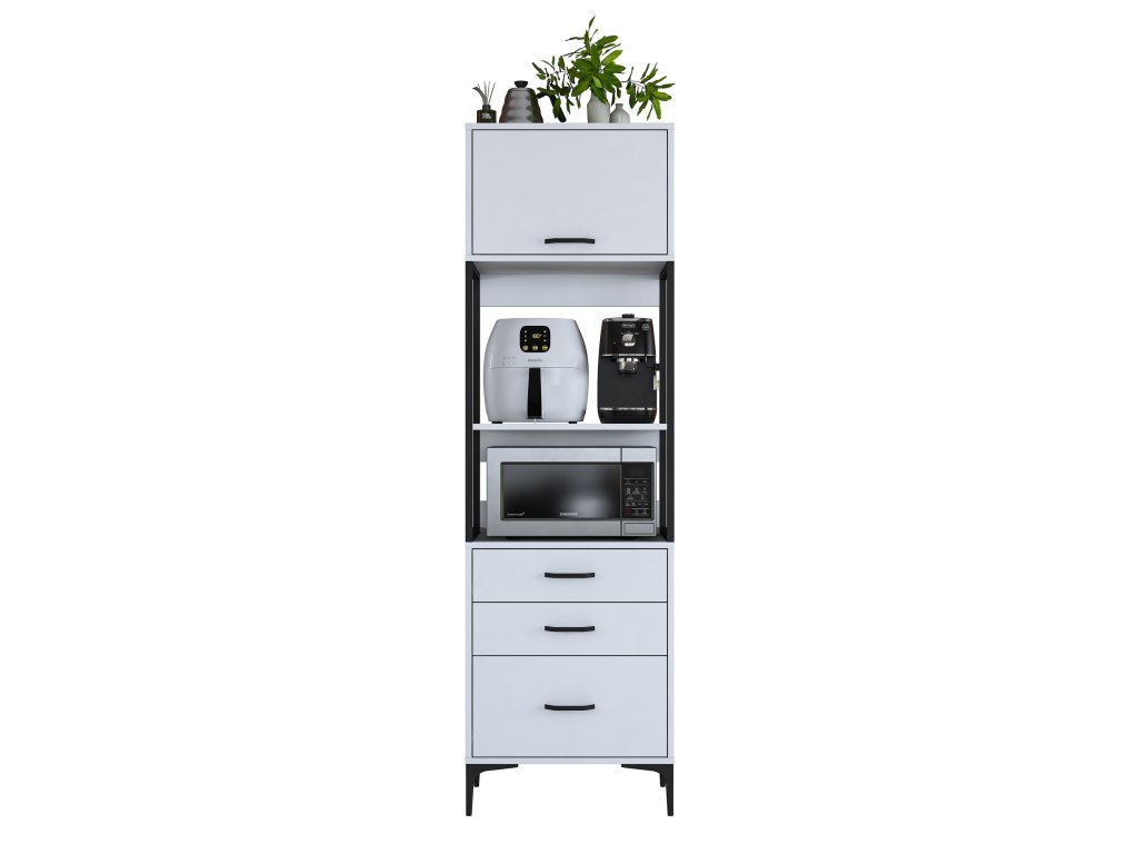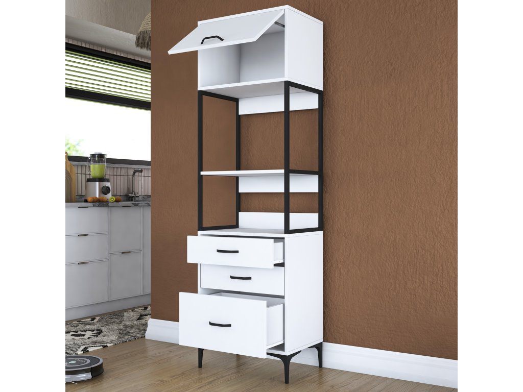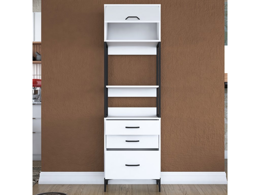 Skříň TOM nabízí kombinaci úložných prostor v podobě jedněch plných dvířek, tří prostorných zásuvek a praktického regálku, který je ideální pro vystavení nebo snadný přístup k často používaným předmětům. Díky své výšce je skříň vhodná i do menších koupelen, kde pomáhá maximálně využít dostupný prostor.