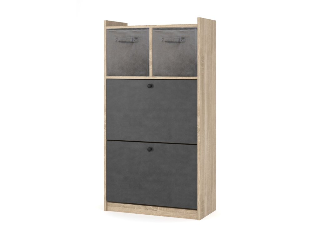 TONY 4, dvoudveřový botník s organizéry, dub sonoma-šedý